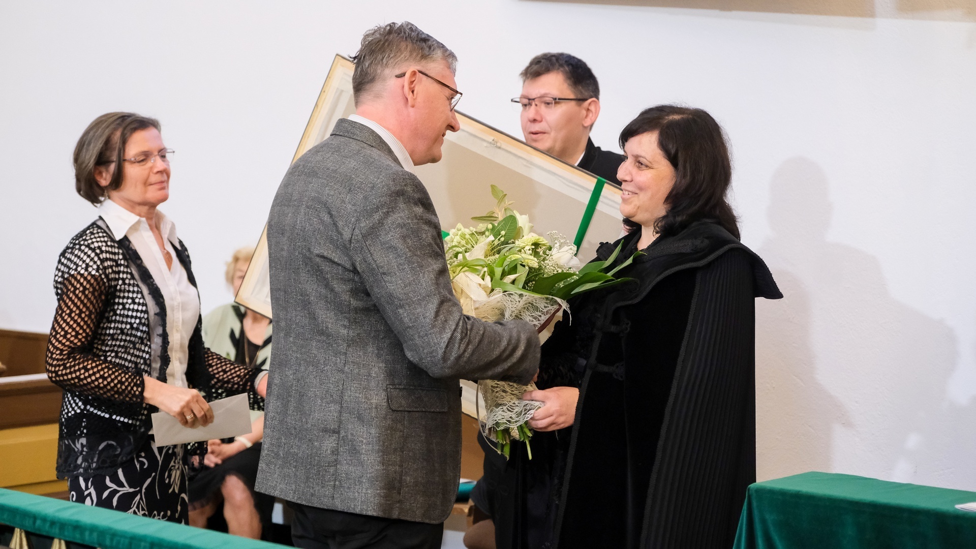 A Gyulára 12 évvel ezelőtt érkezett lelkészt egy Kiss Árpádné debreceni népi iparművész által készített palásttal ajándékozták meg, feleségét pedig Tömpe Emőke gyulai parókiát ábrázoló festményével és virágcsokorral lepték meg.