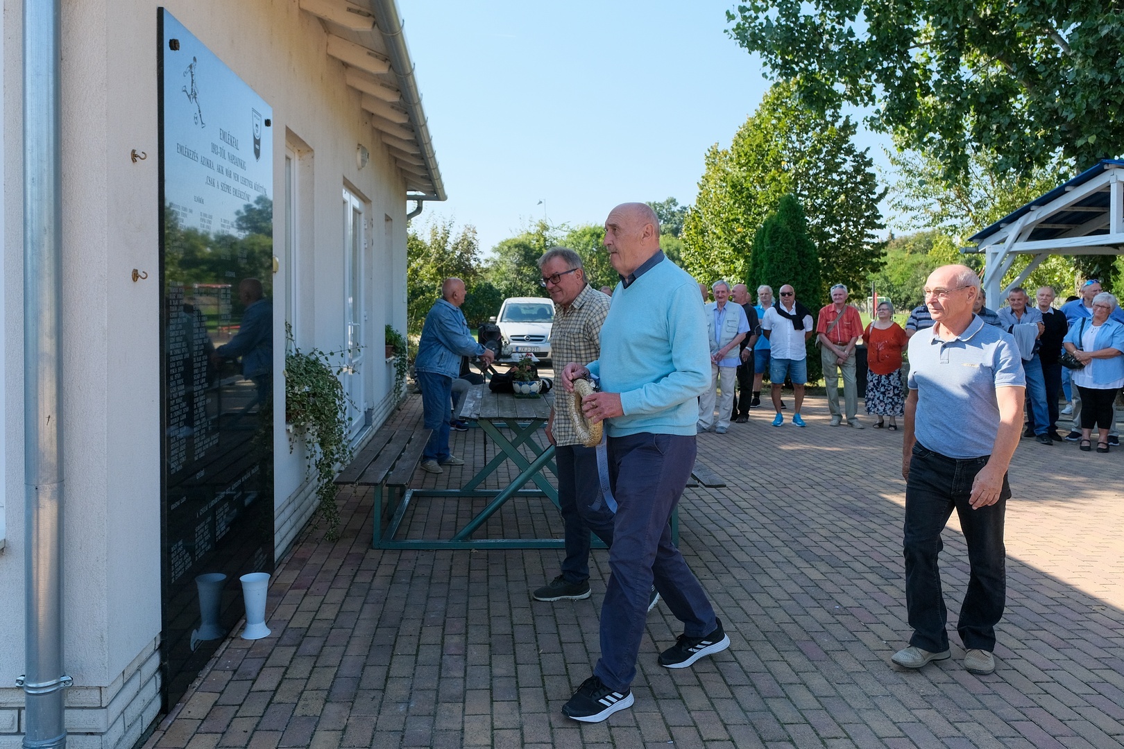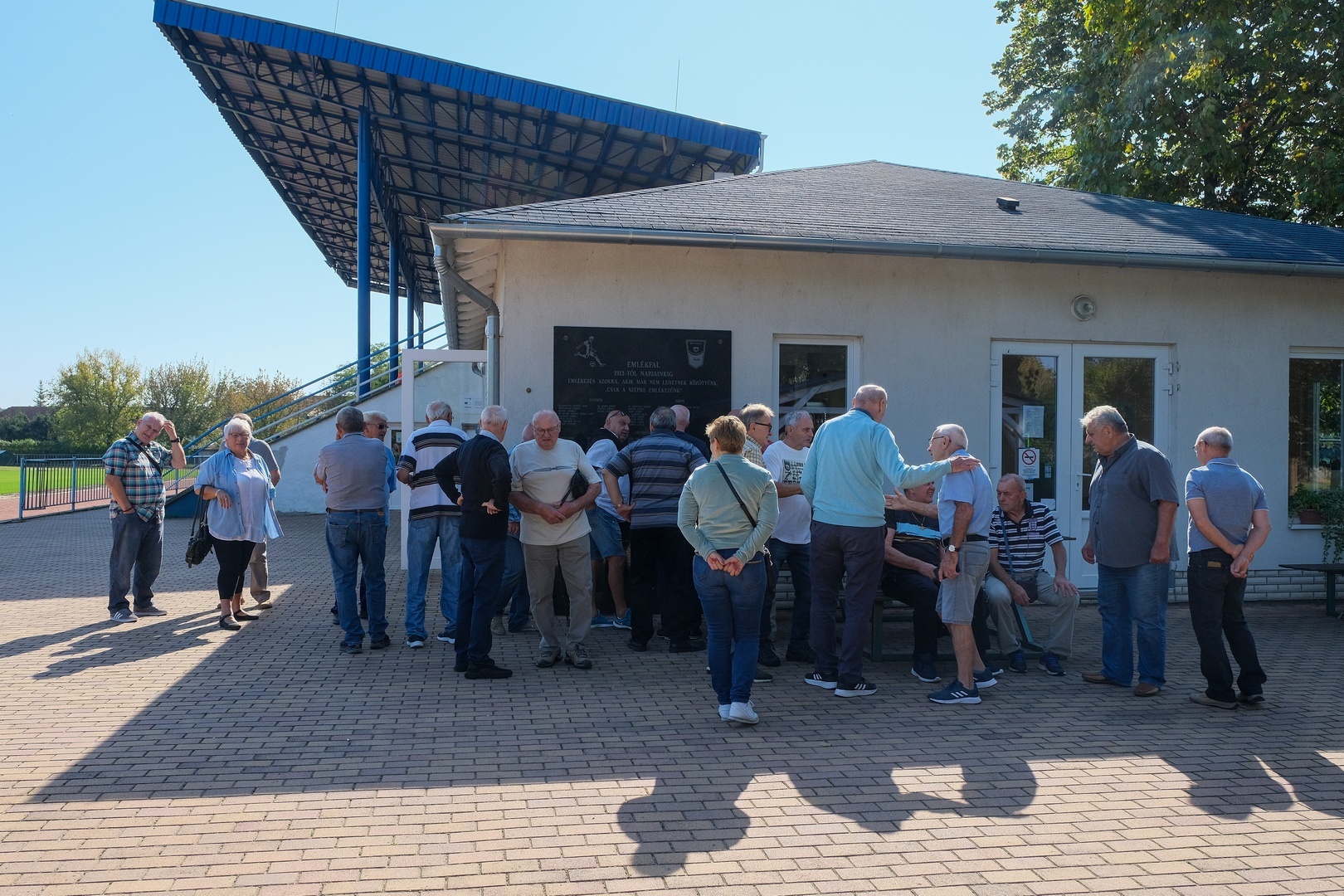 Az Id. Christián László Városi Sporttelep emléktáblájánál gyűltek össze