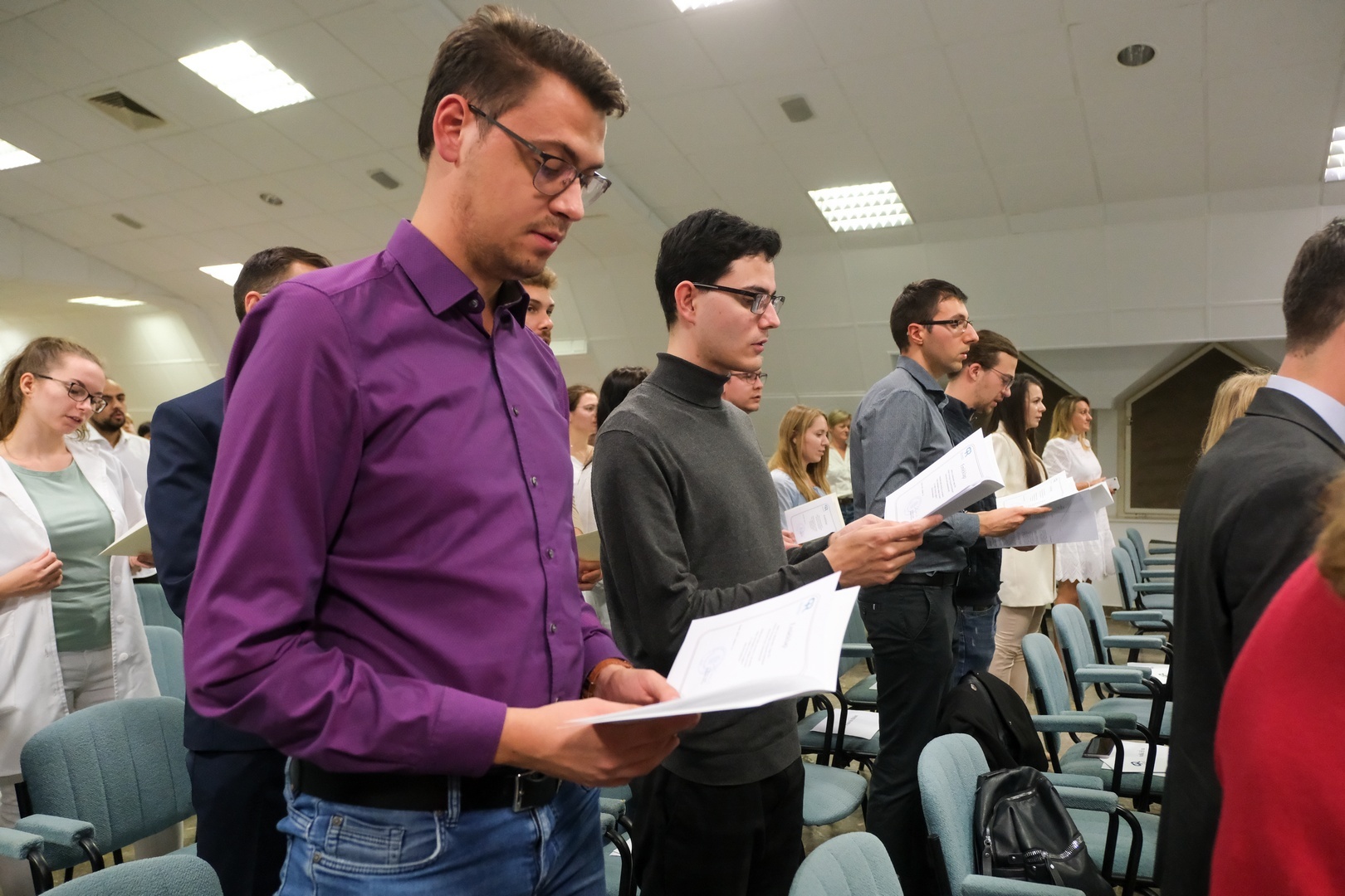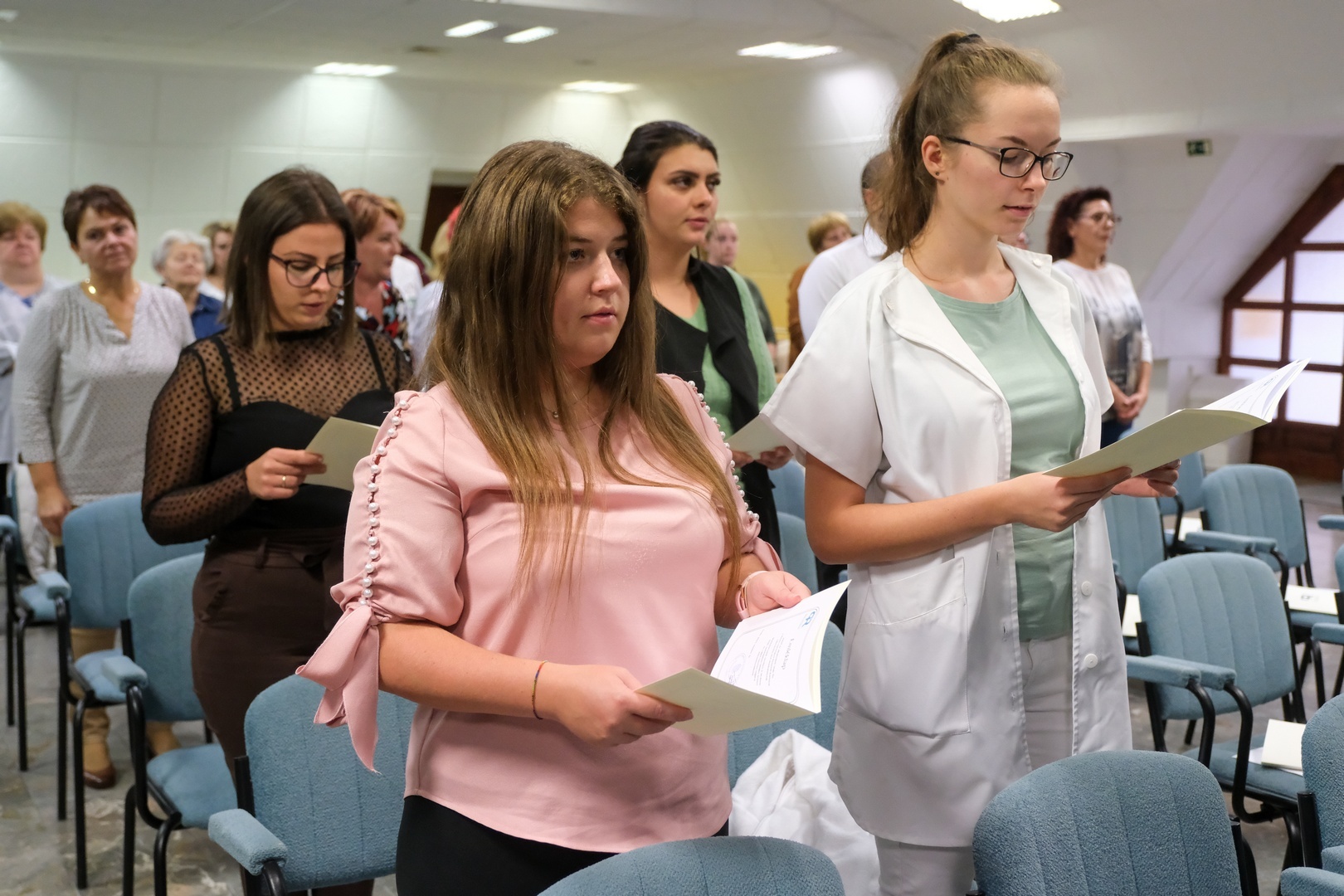 A folytatásban a főigazgató főorvos gratulált a pályakezdőknek, akik esküt tettek, valamint köszöntötték az orvosokat, akik a közelmúltban szakvizsgáztak.