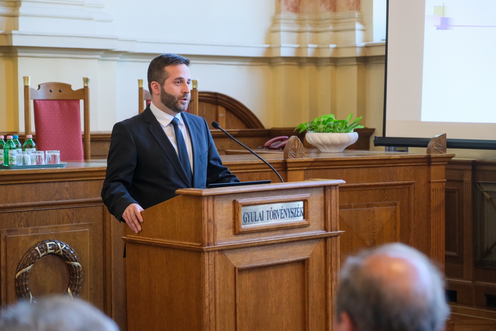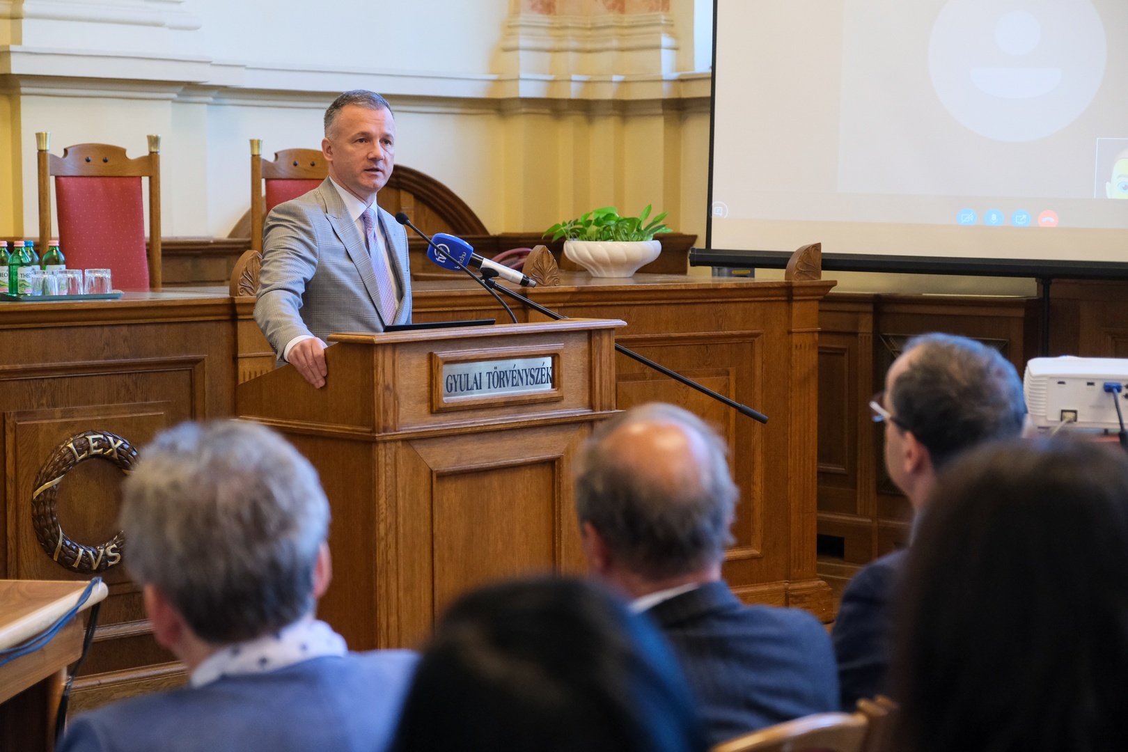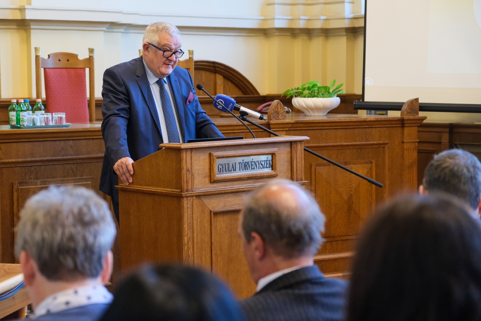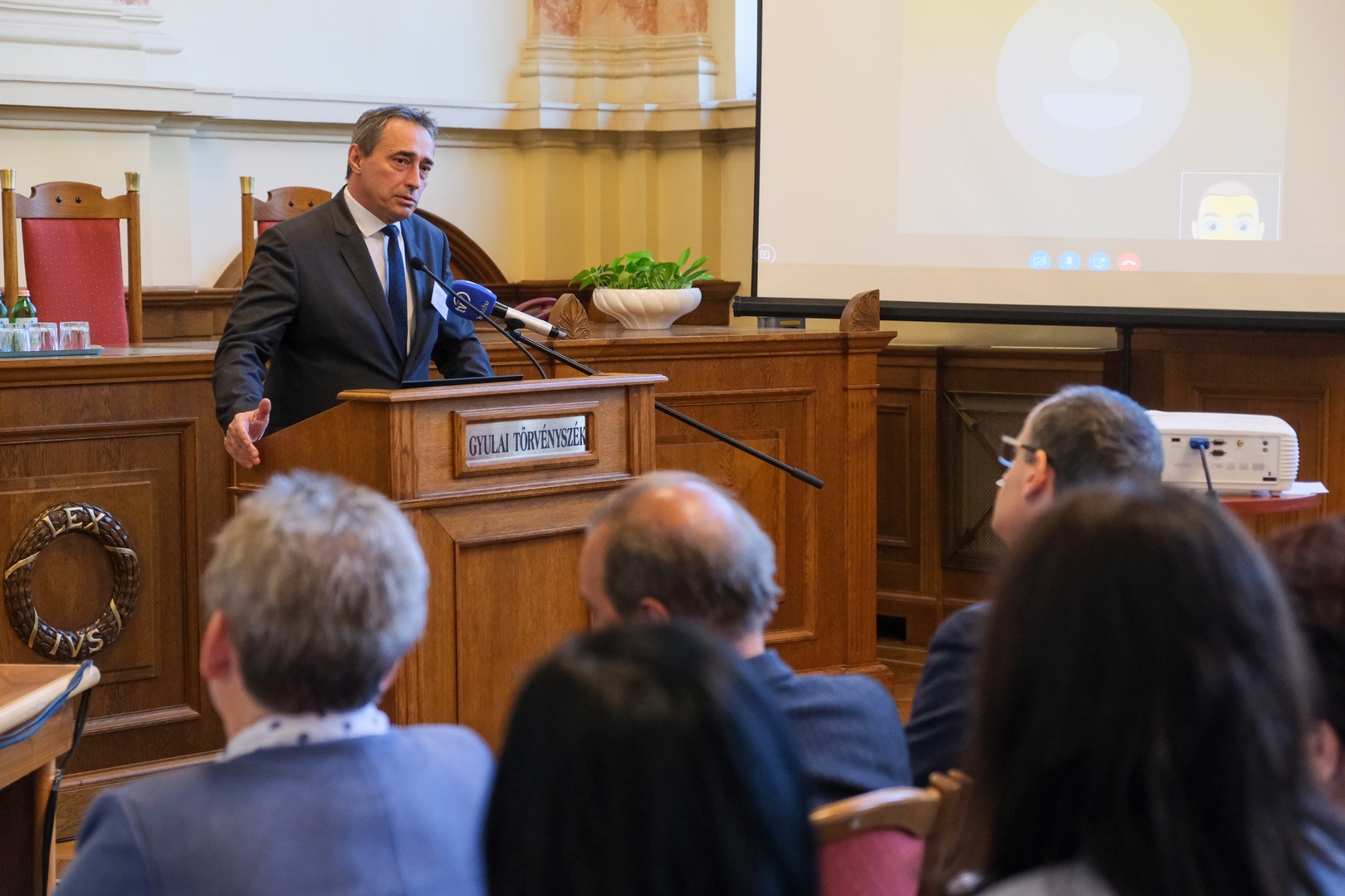 Köszöntőt mondott Görgényi Ernő polgármester, aki kifejtette: ilyen konferenciákat jellemzően turisztikai központokban, egyetemi városokban vagy olyan településeken, ahol van törvényszék, vármegyei kórház és főügyészség, Gyulára pedig mindez igaz, hiszen a fürdőváros nem vármegyeszékhely – pedig 500 éven keresztül az volt –, de ezek az intézmények itt találhatók meg, valamint egyetemi kar is működik.