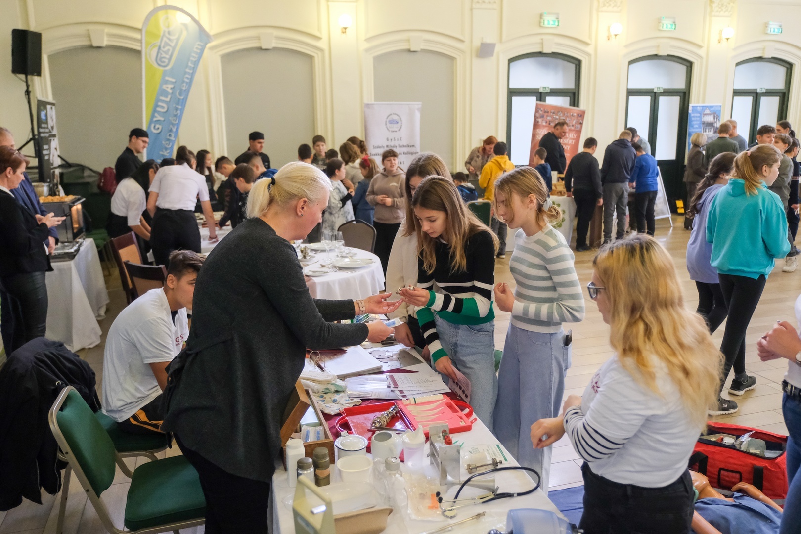 Kiss János programkoordinátor köszöntőjéből kiderült, mintegy 200-300 általános iskolást vártak a helyszínre, ahol 18 szakmát mutattak be a Gyulai Szakképzési Centrum és a Békéscsabai Szakképzési Centrum tagintézményeinek standjain. A tanulók elsősorban régi, de ma is művelt mesterségekkel ismerkedhettek meg, emellett egy interaktív szigeten már nem létező szakmákról is ismereteket szerezhettek, például a huszárok és a gulyások mindennapjairól.