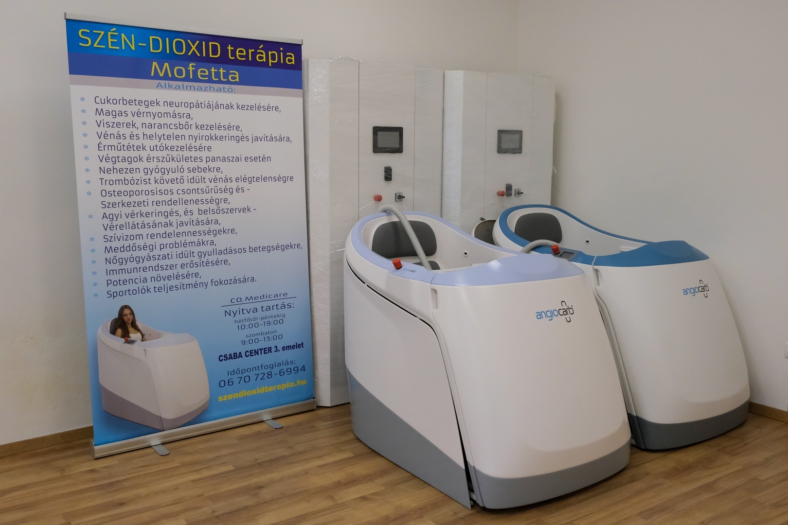 Az AngioCarb szén-dioxid-szárazfürdő Gyulán a Béke sugárút 14–16. szám alatt, a Stéberl-házban (elérhetőség: 06-30/624-8818), Békéscsabán a Gyóni Géza utca 18–20. szám alatt (elérhetőség: 06-70/728-6994) vehető igénybe. Honlap: https://szendioxidterapia.hu/ Facebook: https://www.facebook.com/szendioxidterapia.hu.