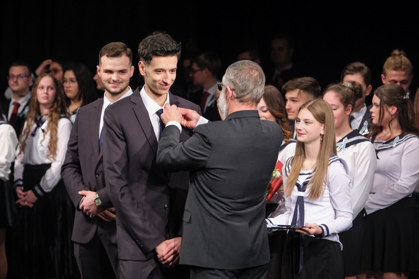A Karácsonyi János katolikus gimnázium három végzős osztályának 64 tanulója kapott szalagot november 24-én a gyulai Erkel Ferenc Művelődési Központ színháztermében.