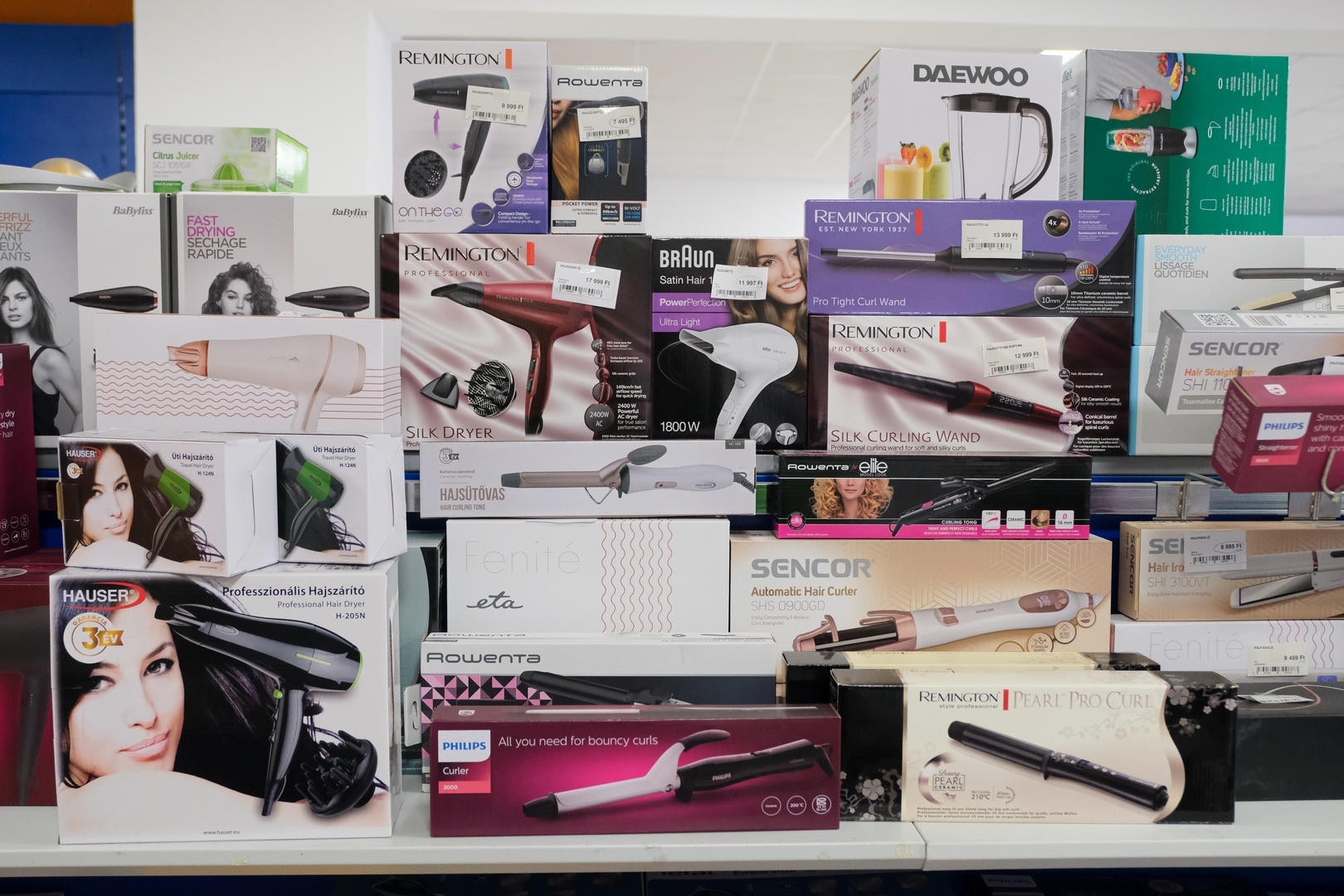 Papp Jánostól megtudtuk, különféle hajformázókat – hajvasalókat, hajsütő vasakat – is beszerezhetünk az áruházban. Kifejtette: a hajvasalók általában kerámiabevonatosak, így nem roncsolják a hajat. Emellett olyan készülékek is vannak, amelyek ionizálással vagy gőzöléssel védik a hajat, és olyan eszközök is léteznek, amelyeknek a felületét argánolajjal vonták be. Hajgöndörítőből szintén többféle van, a 3-4 ezer forintos alapkészüléktől kezdve a digitális hőmérsékletszabályozóval rendelkező termékekig.