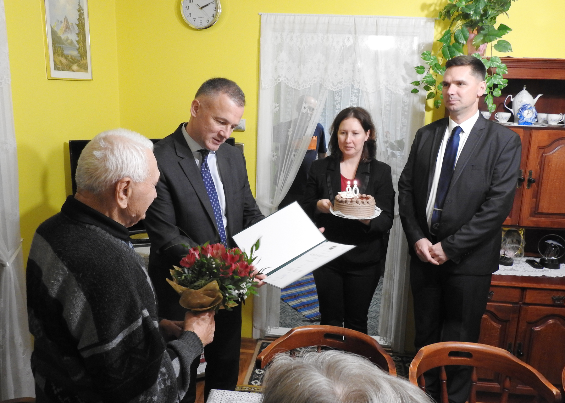 Baksa Józsefet köszöntötte 90. születésnapján, december 13-án Timár Andrea aljegyző, Görgényi Ernő polgármester és Kiss Szabolcs önkormányzati képviselő.