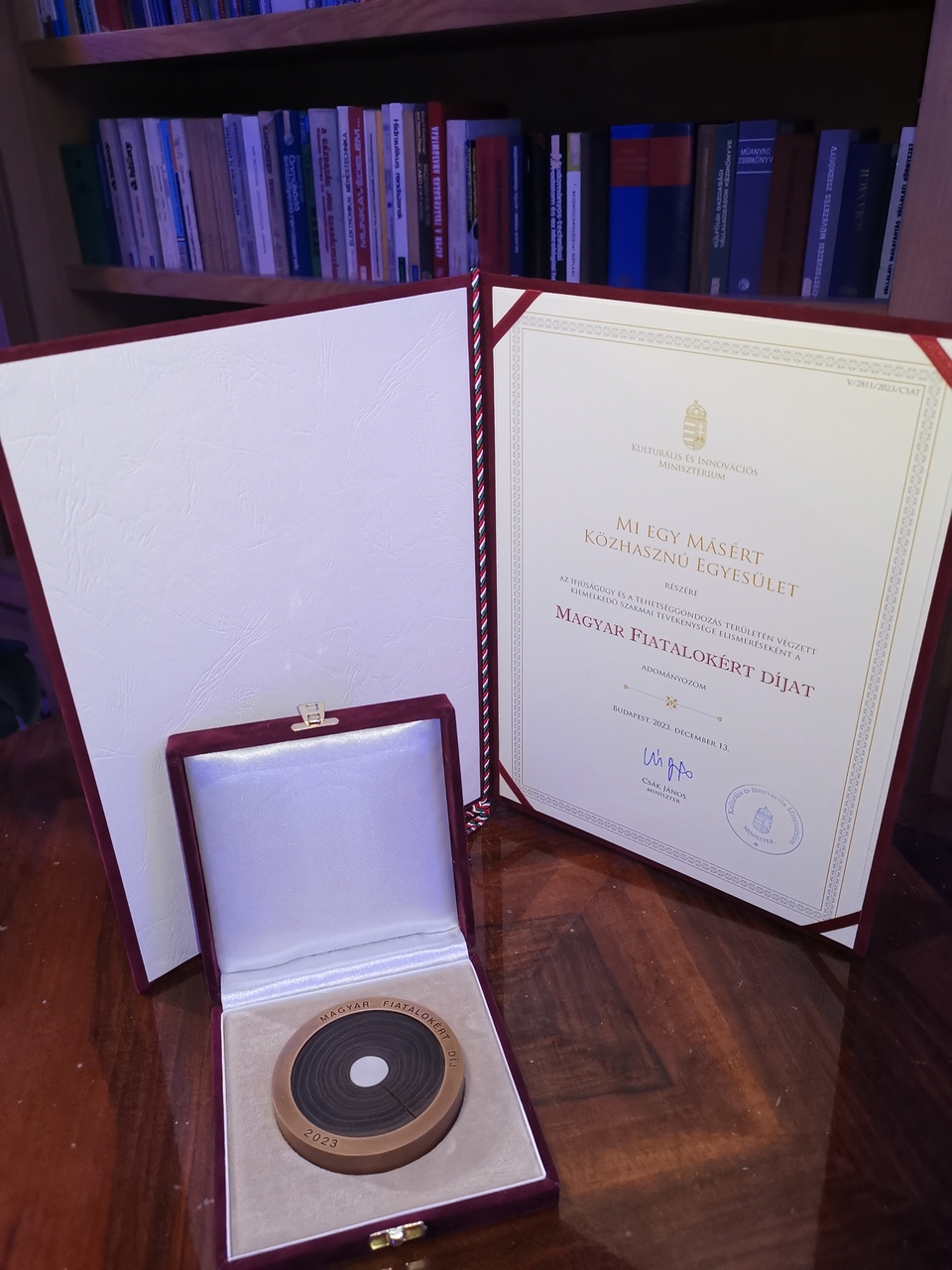 Magyar Fiatalokért díjat kapott a Mi Egy Másért Közhasznú Egyesület – tájékoztatta lapunkat Ament Balázs, az egyesület elnöke.