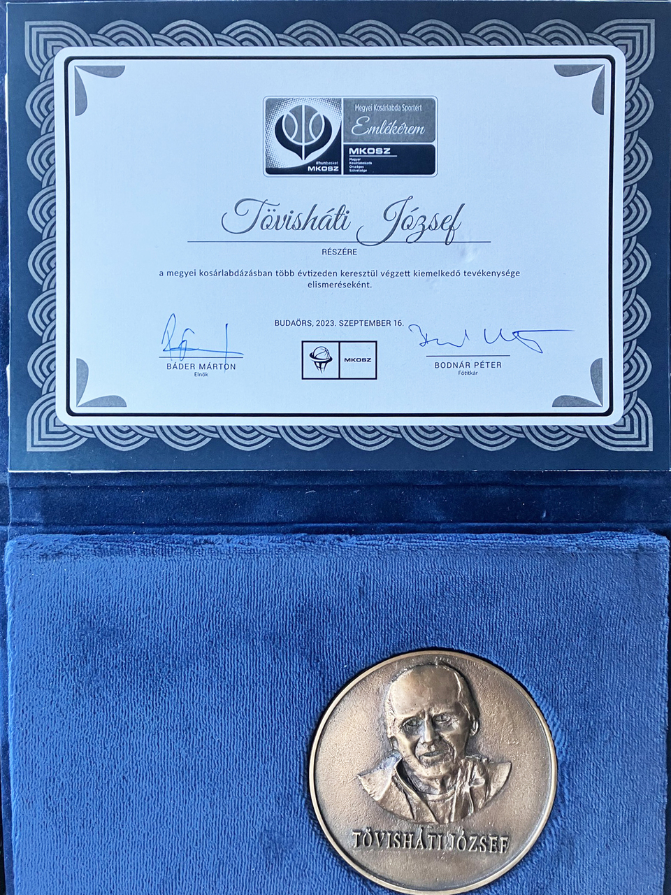A Békés vármegyei kosárlabdasportágban több évtizeden keresztül végzett kiemelkedő tevékenysége elismeréseként Megyei Kosárlabdasportért emlékéremmel tüntette ki Tövisháti Józsefet a napokban a Magyar Kosárlabdázók Országos Szövetsége (MKOSZ) – tájékoztatta lapunkat a Békés Vármegyei Kosárlabda Szövetség.