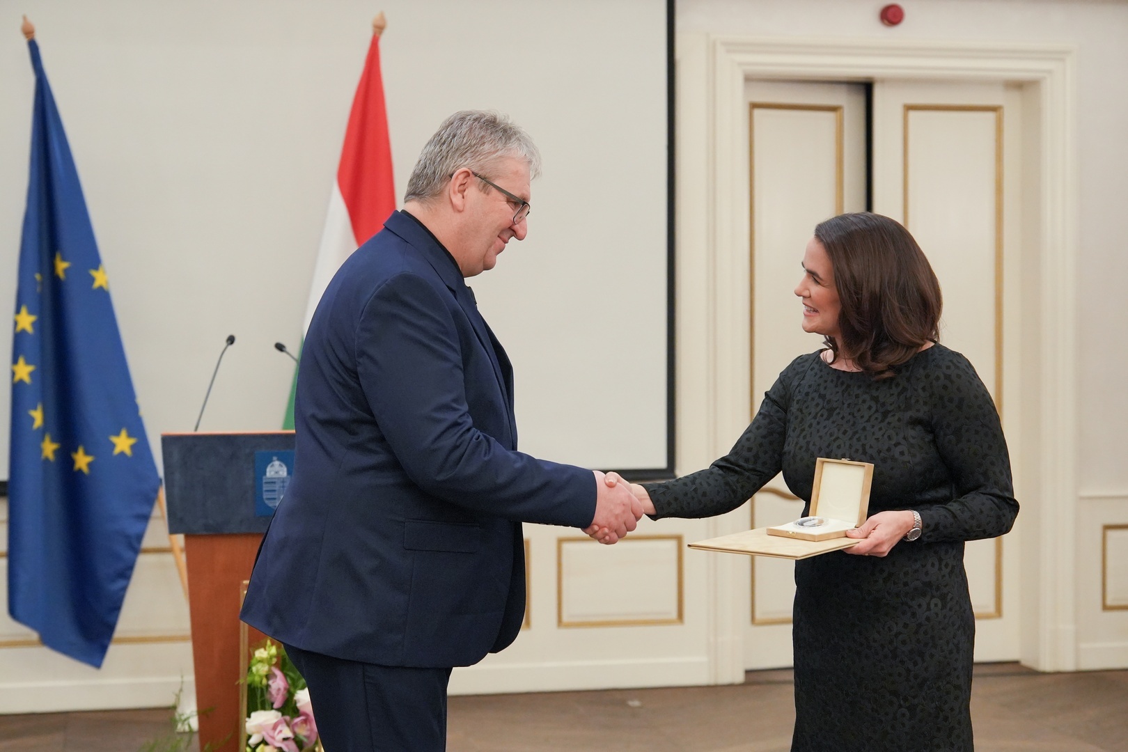Novák Katalin aláhúzta: létrehoztak egy elismerést, amelyet itt, Békés vármegyében ad át először. A Magyar Köztársaság Elnökének Érdemérmét elsőként Czirok Mihály, a Gyulai Erkel Ferenc Alapfokú Művészeti Iskola igazgatójának adta át, Gyula város zenei oktatása és a magyar zenei kultúra megőrzése érdekében végzett áldozatos munkájáért.