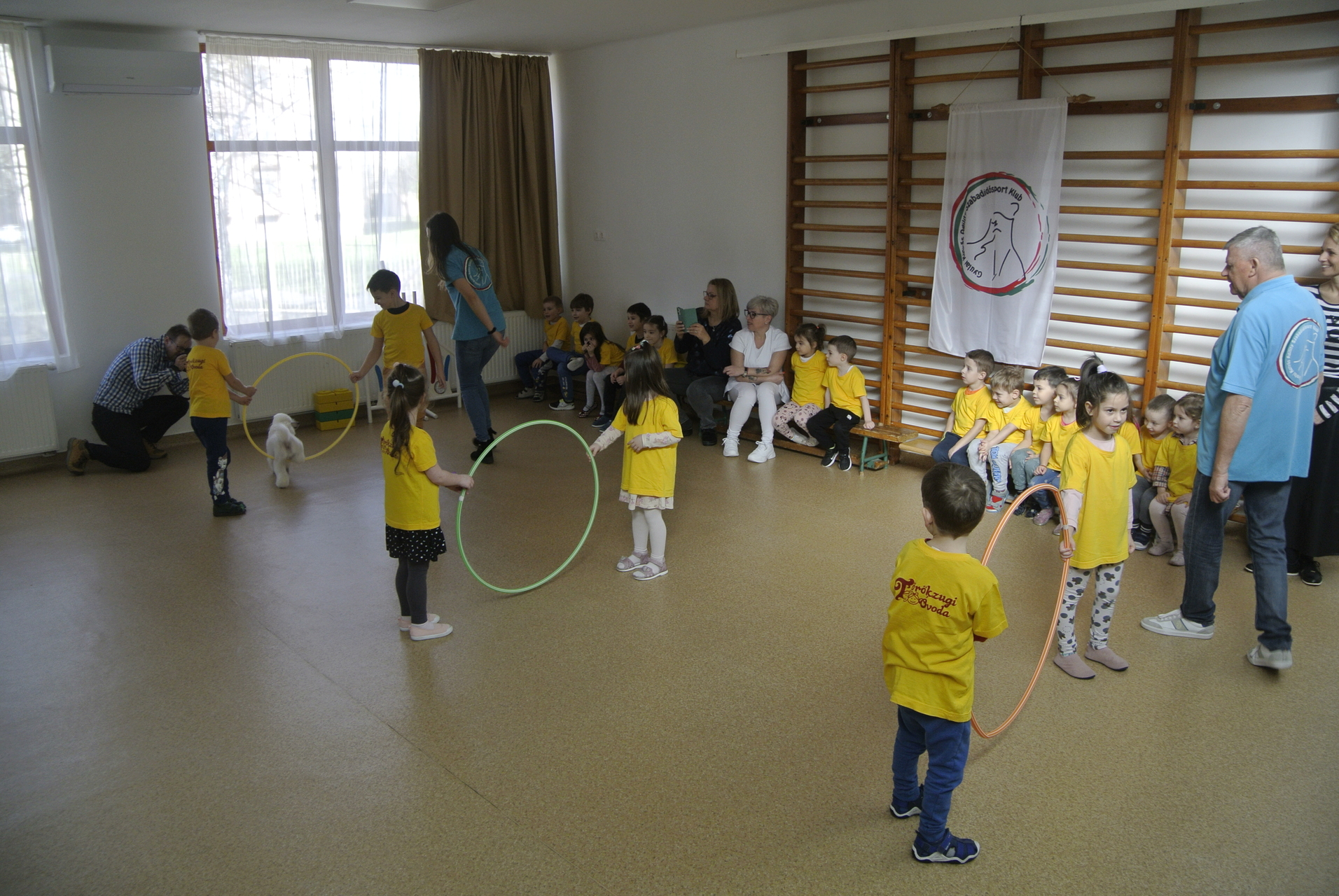 Makráné Gombkötő Zita, a GYVEÓ vezetője aláhúzta: a kutyás egyesület tavasszal és nyáron az egyesített óvoda mind a nyolc tagintézményét meglátogatja. Kifejtette, hogy a kutyákkal való foglalkozások során fejlődik a gyermekek mozgása, finommotorikája és kommunikációja is, a folyamatos ingerek miatt minden érzékszervüket használják, valamint bővülnek az állatok gondozásával, életmódjával kapcsolatos ismereteik.