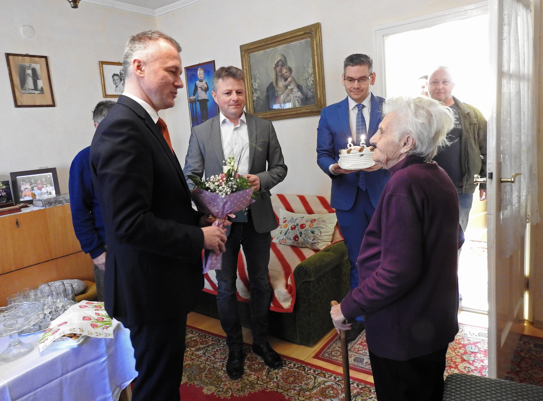 Szentpálfalva legidősebb lakóját, Nánási Istvánnét köszöntötte február 27-én, 95. születésnapján Görgényi Ernő polgármester, Alt Norbert alpolgármester és Csige Gábor jegyző.
