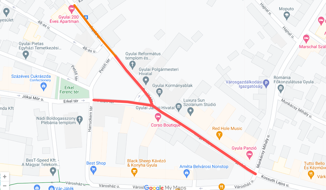 Mint írták, Gyulán reggel 6 órától 13 óráig lesz lezárva a Megyeház utca, a Munkácsy utca, Városház utca és Kossuth utca kereszteződése előtt. Szintén lezárják a Petőfi tér Harruckern tér felőli kereszteződését, a Városház utca, valamint a Jókai utca irányából érkezők az Esze Tamás utca és az Árpád utca felé mehetnek tovább. Forgalomterelés lesz az Árpád utca és Kávin utca kereszteződésében, a Béke sugárút felől érkezők a Kálvin utca felé mehetnek tovább.