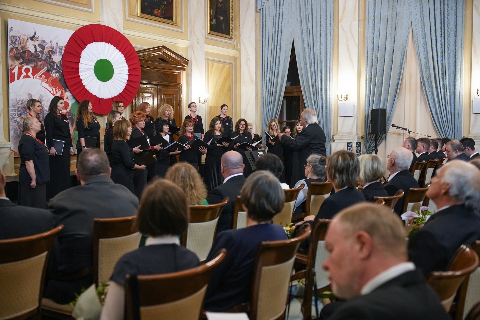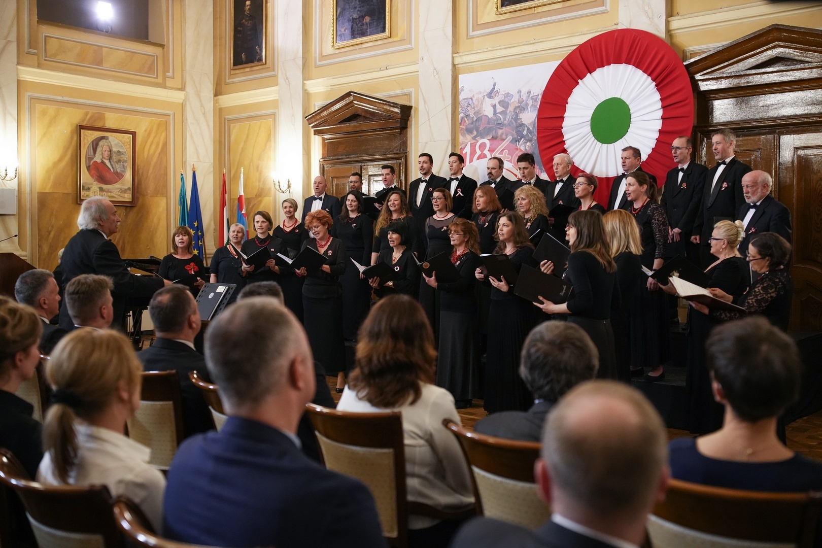 Görgényi Ernő köszöntőjében kifejtette: minden korban vannak olyan igazodási pontok, amelyek nemzeti egységet teremtenek, ilyen volt március 15-e is. Mint fogalmazott, „a nemes és tiszta forradalom” révén eltörölték az úrbéri szolgáltatásokat, azaz a jobbágyságot, törvényt fogadtak el a közteherviselésről, a népképviseletről, a sajtóról, a független, felelős magyar minisztériumról és más sarkalatos kérdésekről; „a hősies szabadságharcban” pedig a nemzet egységesen állt ki szuverenitásáért, „a nemes, a polgár és a földműves egyaránt kész volt vérét hullajtani hazájáért”.