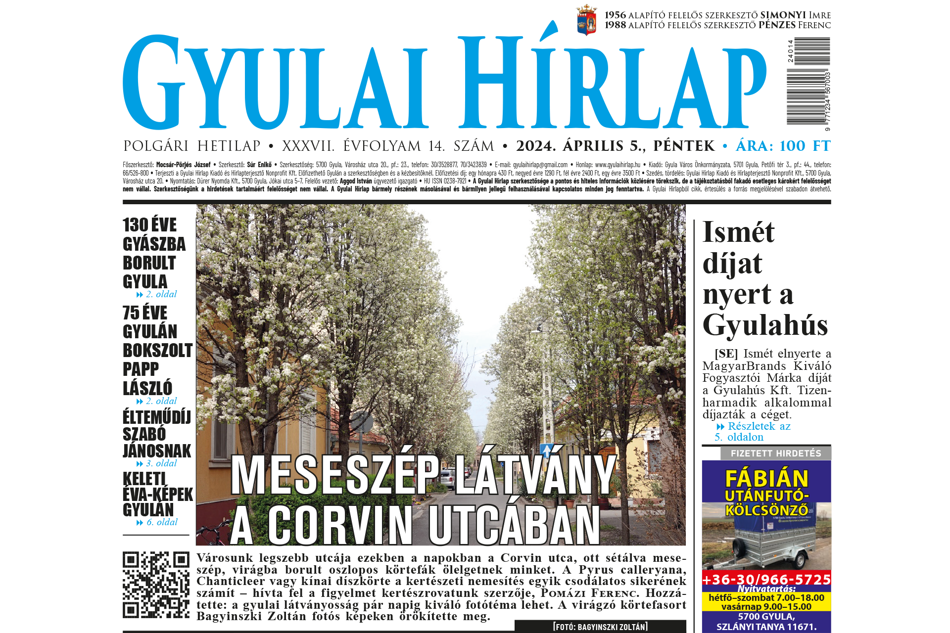 Itt a legfrissebb Gyulai Hírlap! Keresse az újságárusoknál!