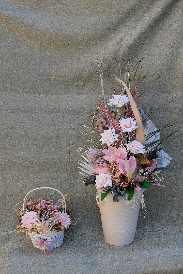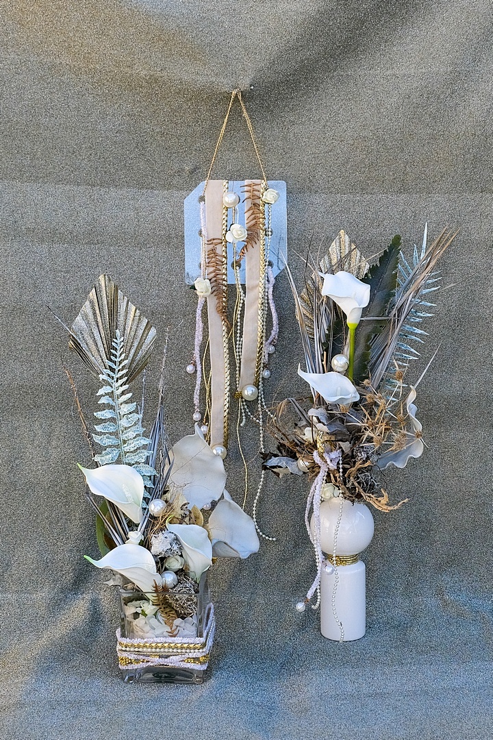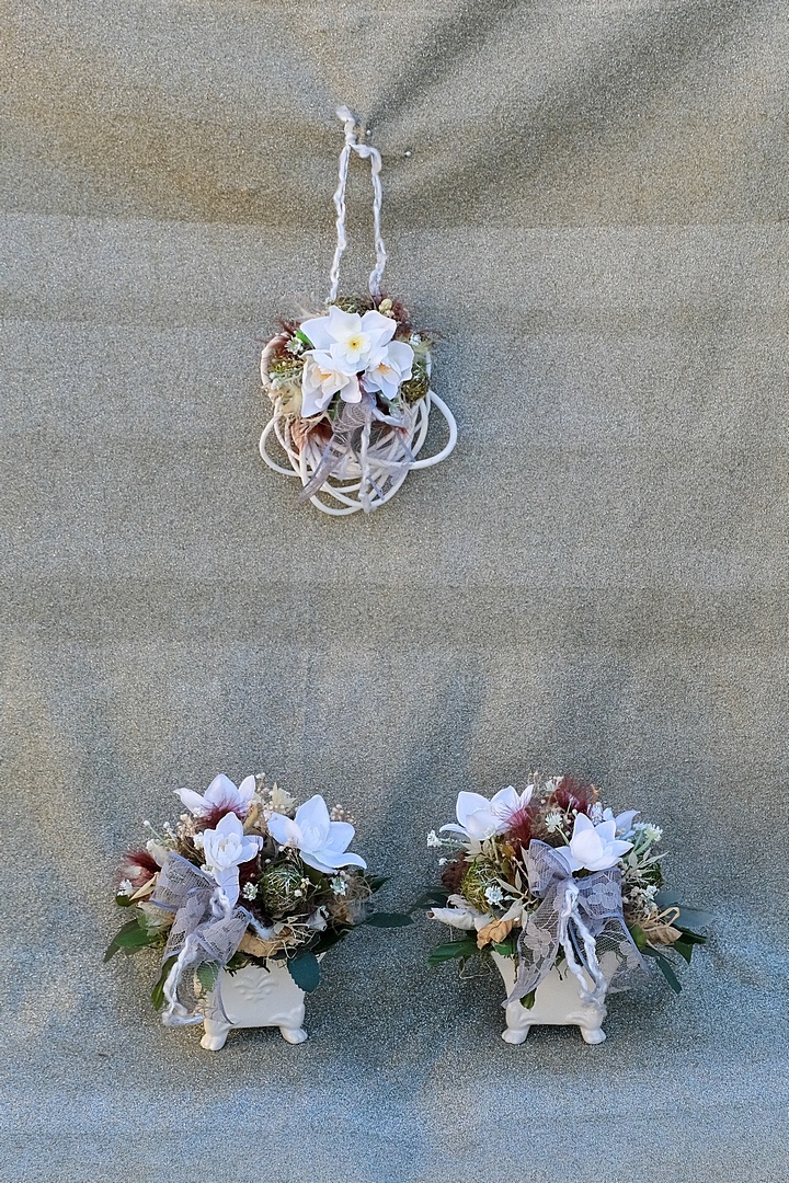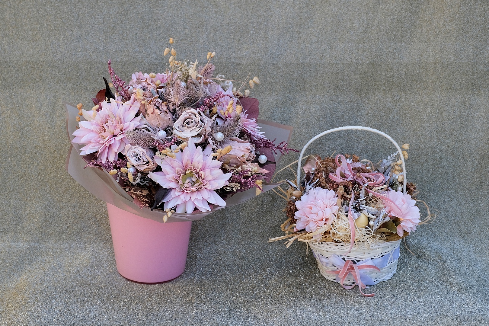 Egymással harmonizáló darabokból álló virágdíszszetteket is kínálnak a Tünde virágüzletben.