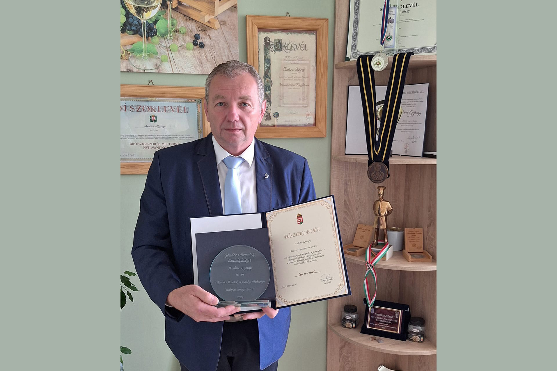 Göndöcs Benedek-emlékplakettet kapott Ambrus György, a Gyulakonyha Nonprofit Kft. ügyvezetője Fekete Szabolcstól, a Göndöcs Benedek Katolikus Technikum igazgatójától, az iskola kimagasló szakmai támogatásáért – közölték a Gyulakonyha közösségi oldalán.