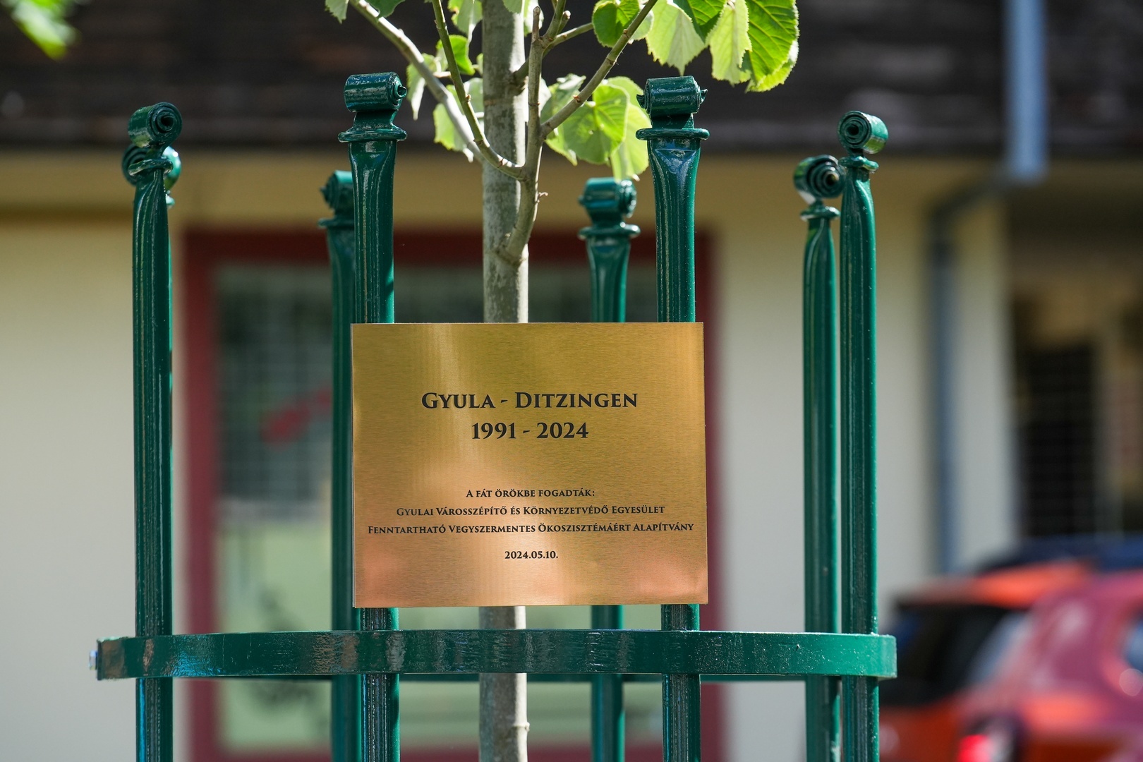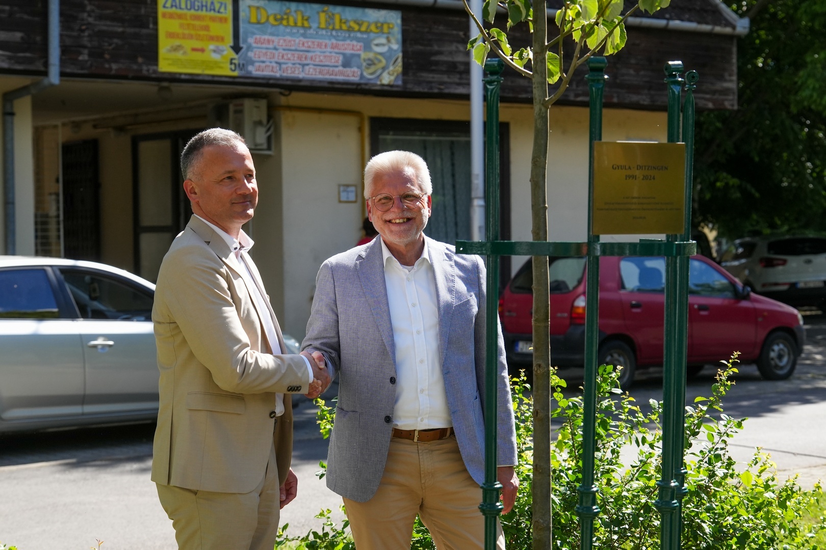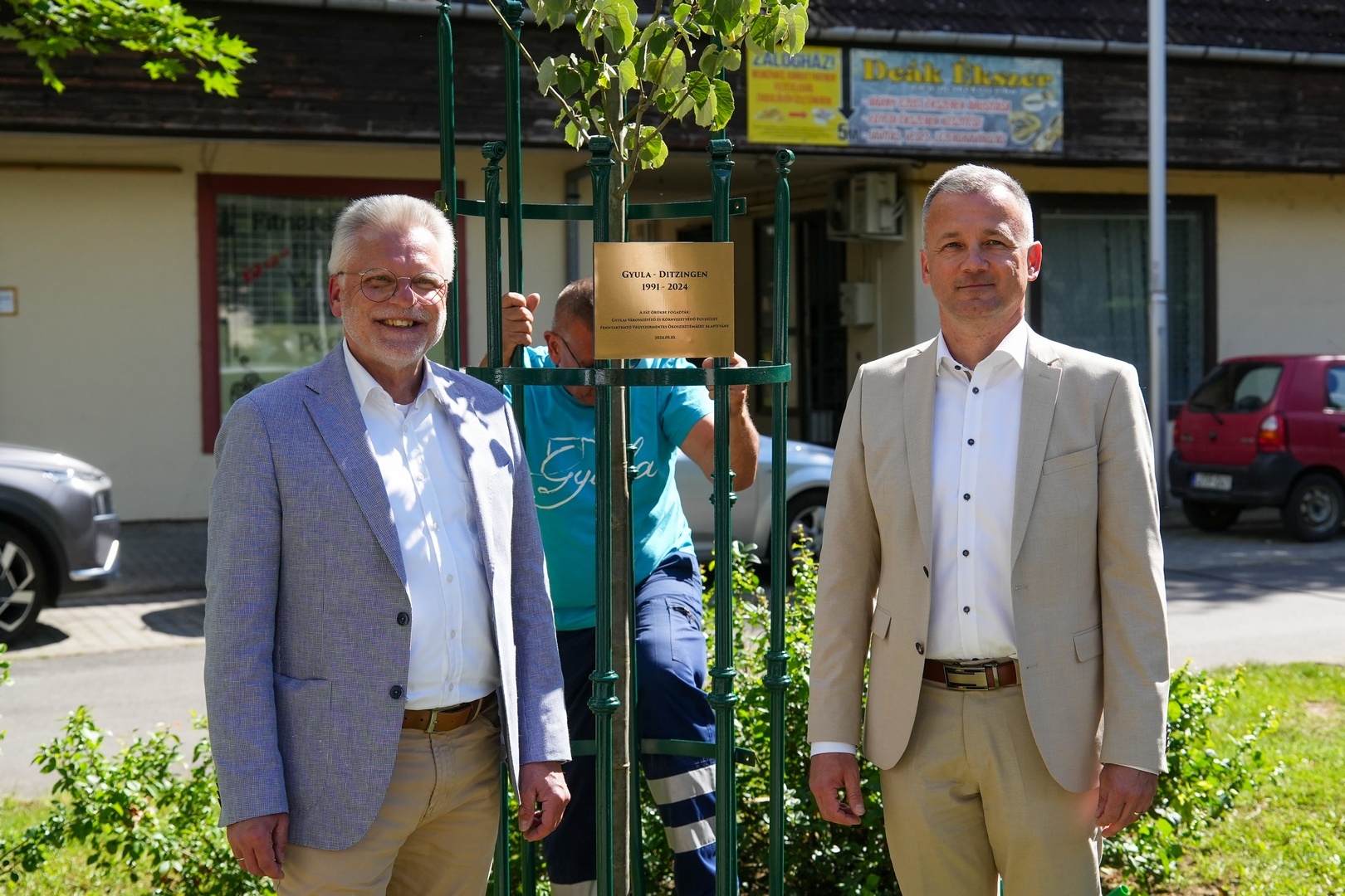 Egy hársfát ültetett el Michael Makurath, Ditzingen város főpolgármestere és Görgényi Ernő, Gyula város polgármestere május 10-én a Ditzingen téren.