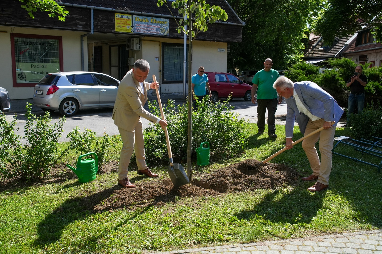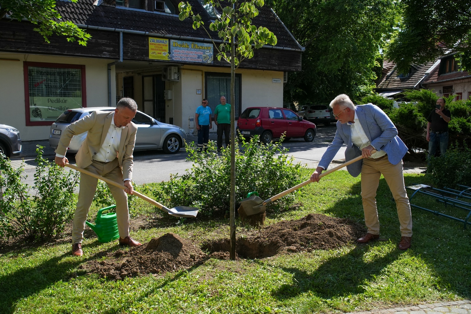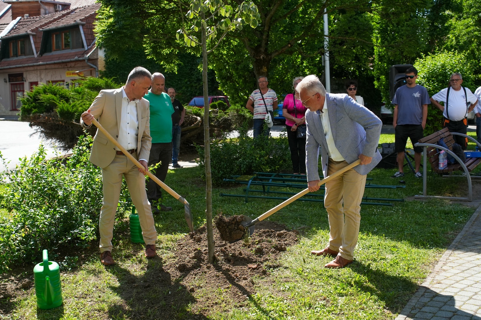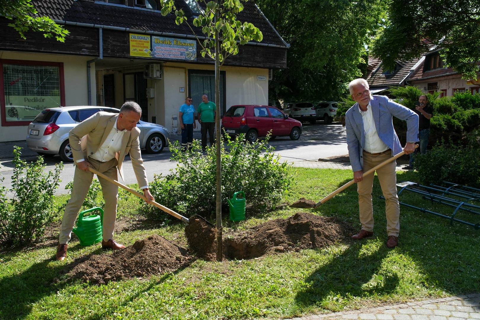 Egy hársfát ültetett el Michael Makurath, Ditzingen város főpolgármestere és Görgényi Ernő, Gyula város polgármestere május 10-én a Ditzingen téren.