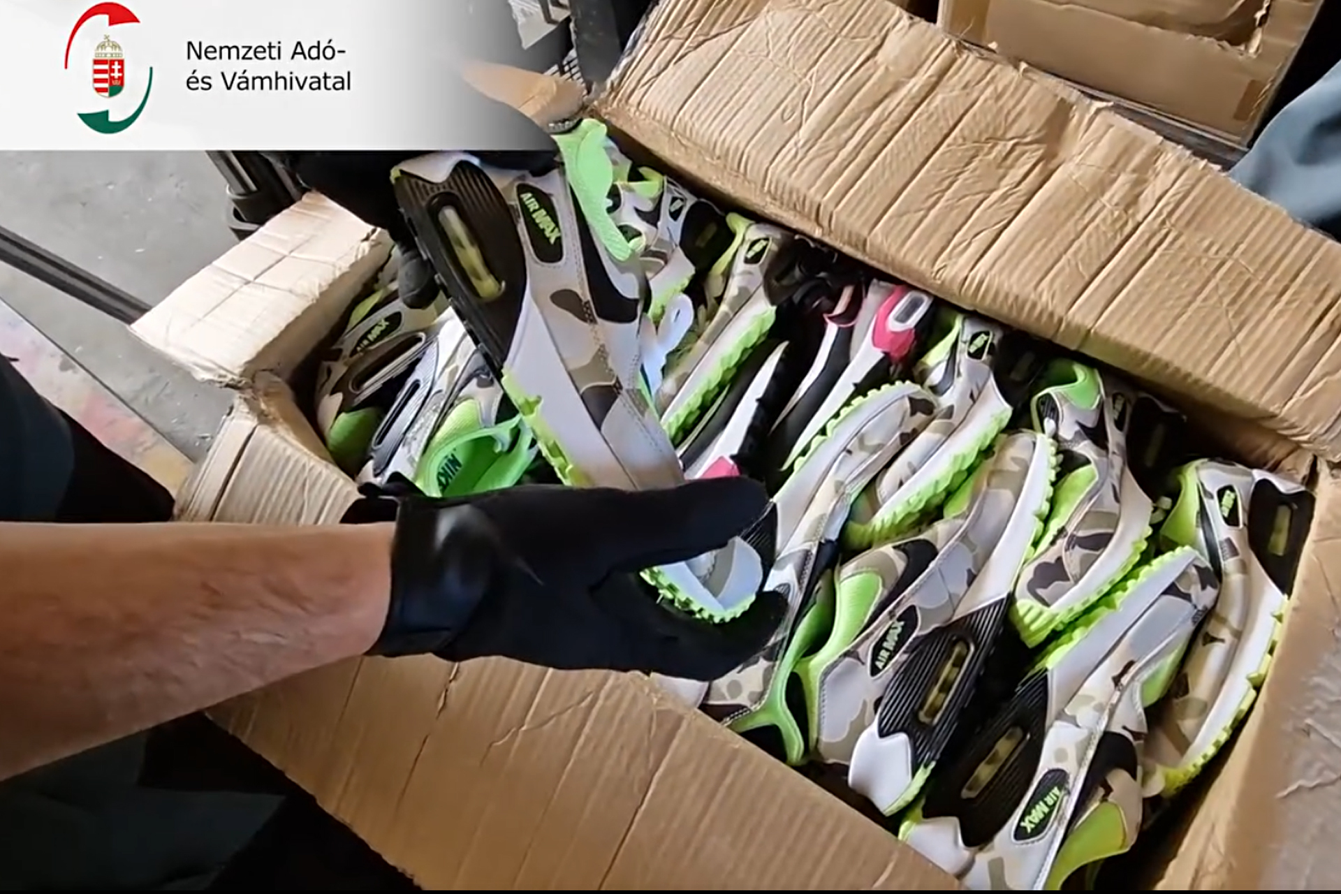 A NAV közösségi oldalán azt írták, a teherautó Görögországból érkezett, és Németország felé tartott. A pénzügyőrök rutinellenőrzés miatt állítottak félre a járművet, amelynek raktérében Nike feliratú cipők, sportmezek, IPhone adatkábelek és Samsung fülhallgatók voltak ömlesztve.
