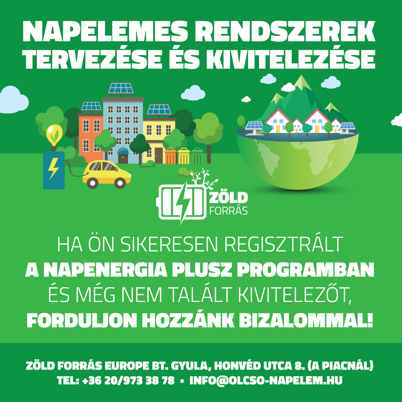 Napelemes rendszerek tervezését és kivitelezését is vállalja a Zöld Forrás Europe Bt. Az érdeklődők a Honvéd utca 8. szám alatt, a +3620/973-3878-as telefonszámon vagy az info@olcso-napelem.hu címen kérhetnek bővebb tájékoztatást.