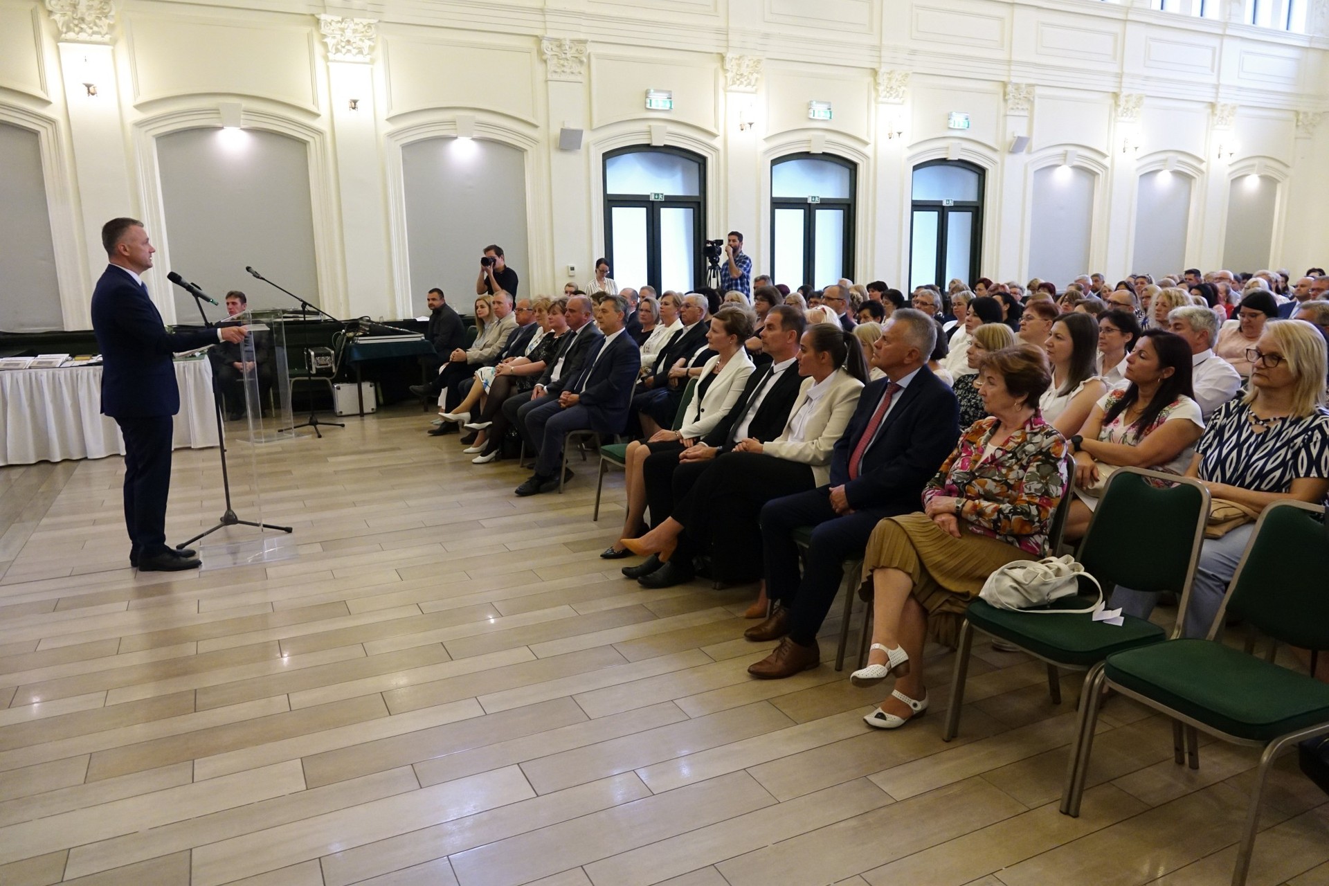 A mintegy 230 résztvevőt Görgényi Ernő, Gyula város polgármestere köszöntötte, aki beszédében kifejtette: a kultúra tiszteletének átadásához elengedhetetlenül szükség van a pedagógusokra. Hozzátette: pedagógussá válni „nemes életcél”, de a tanári pálya „nem könnyű”, ezért különösen fontos a tanárok anyagi és erkölcsi megbecsülése.