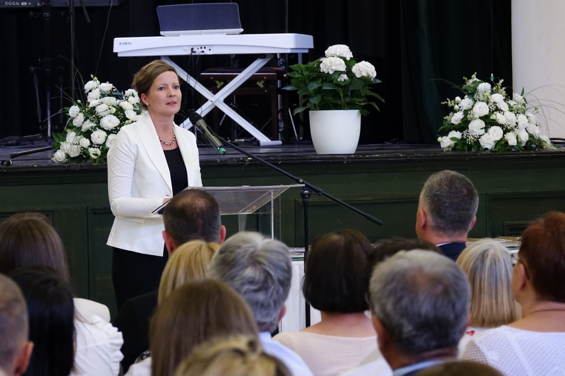 „Köszönöm, hogy nap mint nap fáradhatatlanul, türelemmel, kitartással és szeretettel munkálkodnak azért, hogy a gyerekekből művelt, érző és gondolkodó emberek vállaljanak” – zárta beszédét.