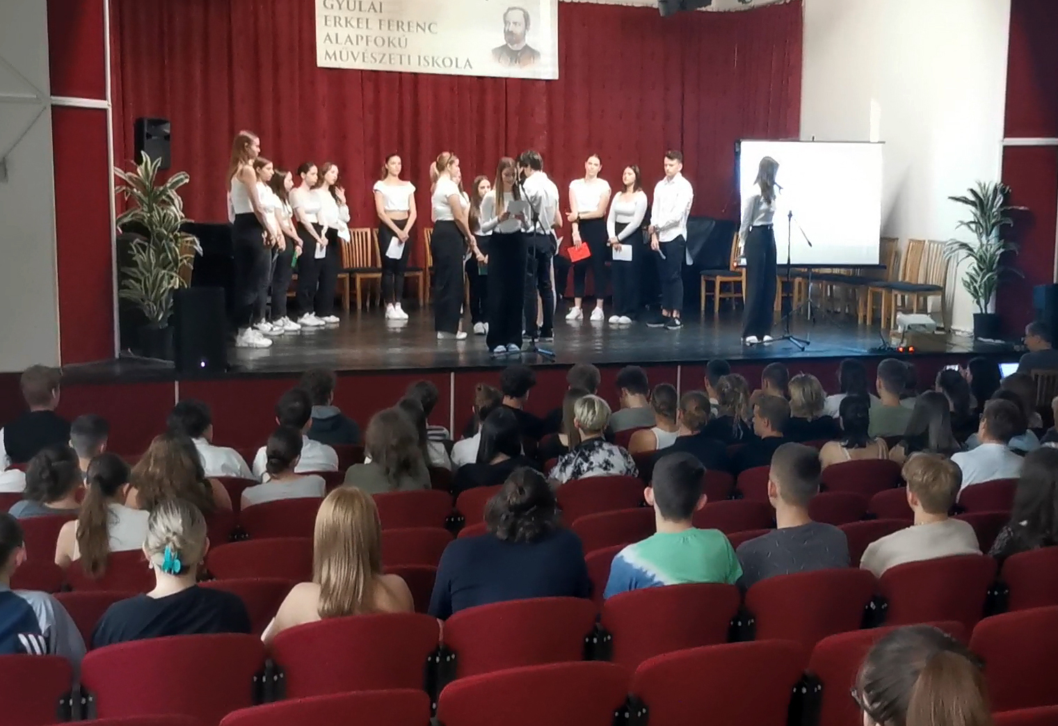 A gyulai Erkel Ferenc-gimnázium diákjai egy nappal az évforduló után a helyi zeneiskolában emlékeztek meg a trianoni békediktátum aláírásának 104. évfordulójáról. A tanulók verses, zenés, táncos formában jelenítették meg a magyar történelem egyik legnagyobb tragédiáját.