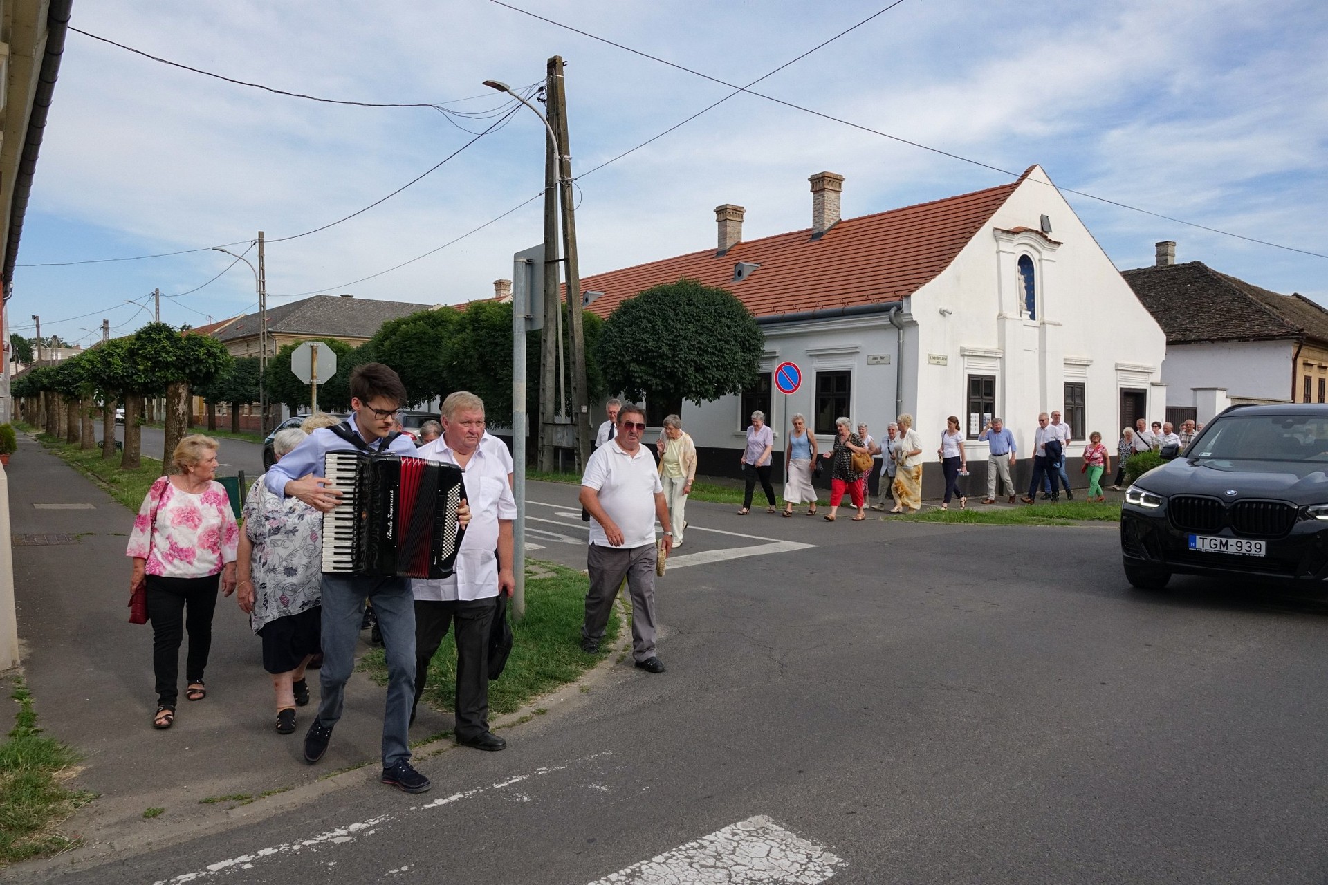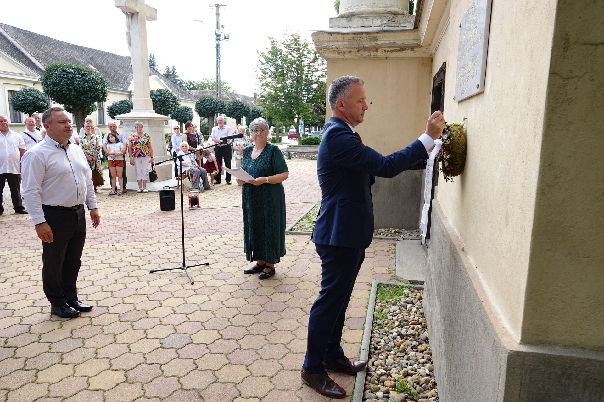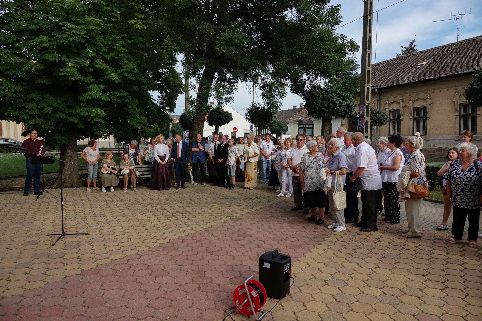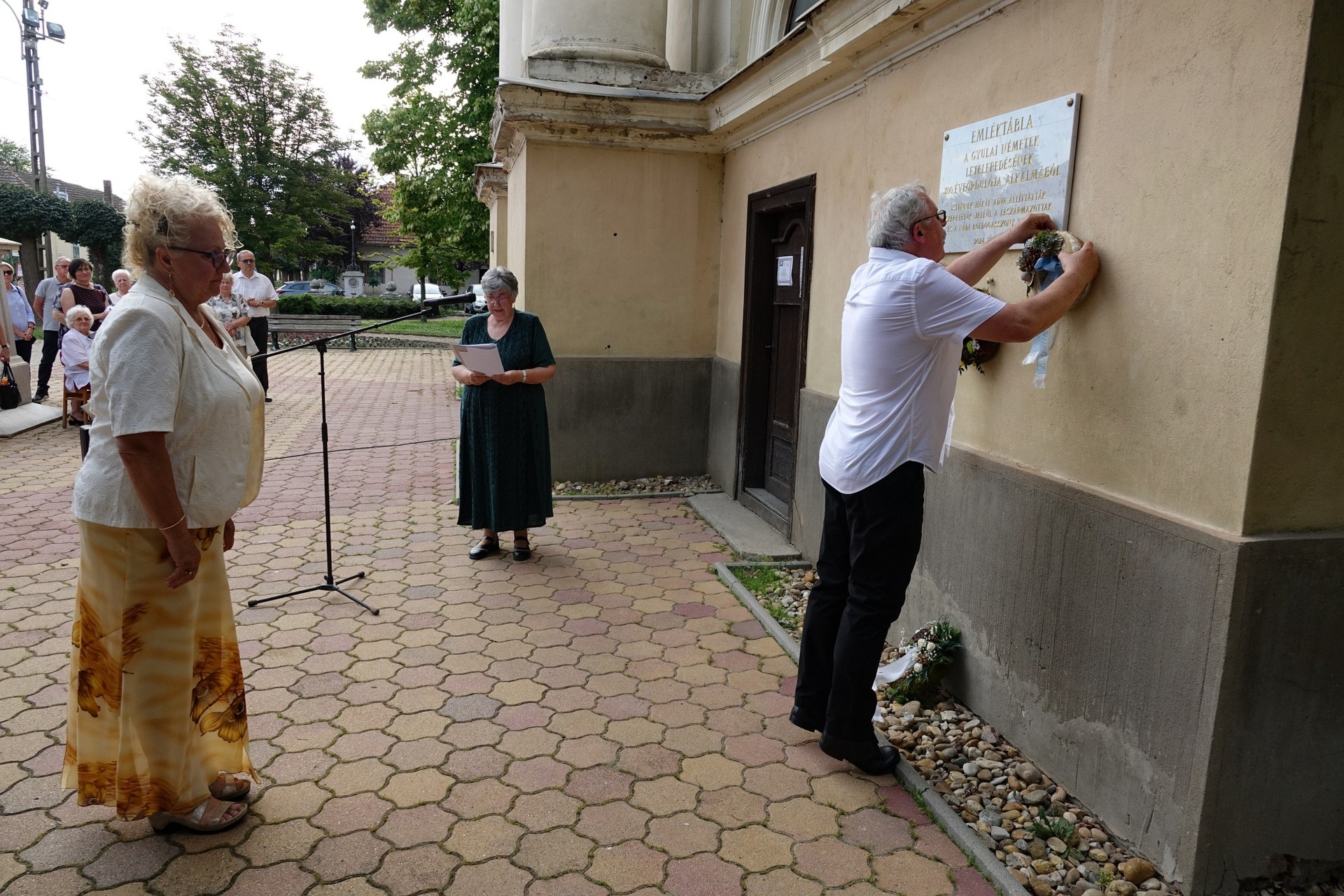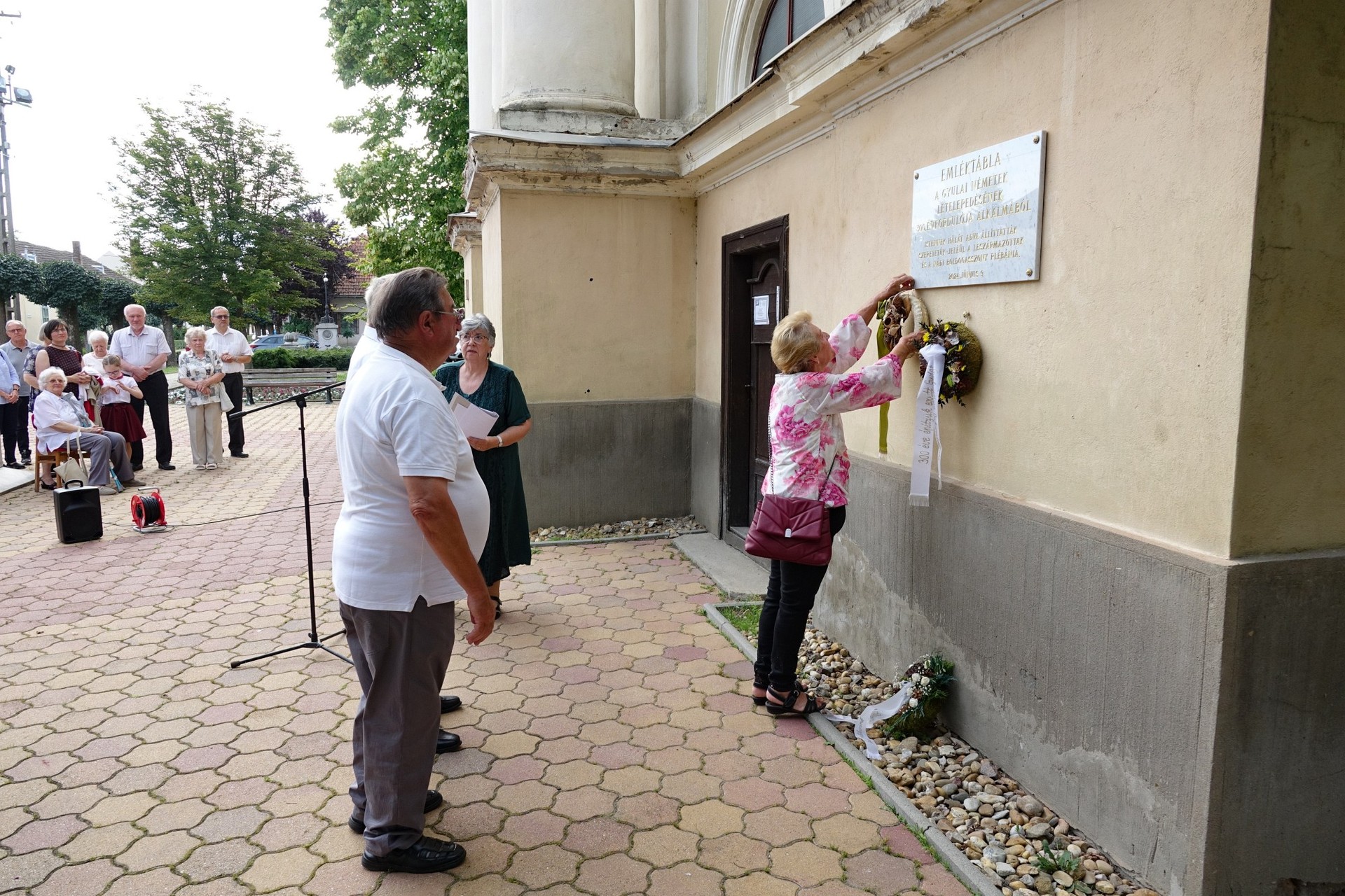 Az emléktáblát Gerebenicsné Vencz Teréz és Hermann Ferenc leszármazottak, a K. Schriffert Hagyományőrző Kör tagjai leplezték le, majd Kovács Péter plébános áldotta meg.