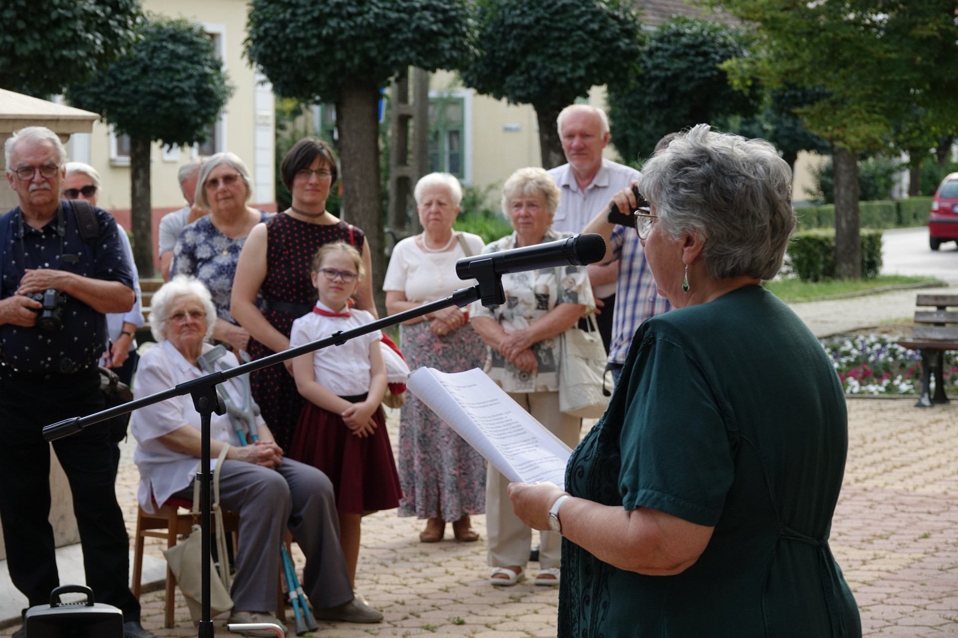 Az eseményen felszólalt Darócziné Leiszt Emma, a Békés Vármegyei Levéltár nyugalmazott főlevéltárosa is, aki elmondta: elvadult, kietlen, mocsaras területre érkeztek a gyulai németek, akik közül volt, aki továbbállt, és többen meghaltak.
