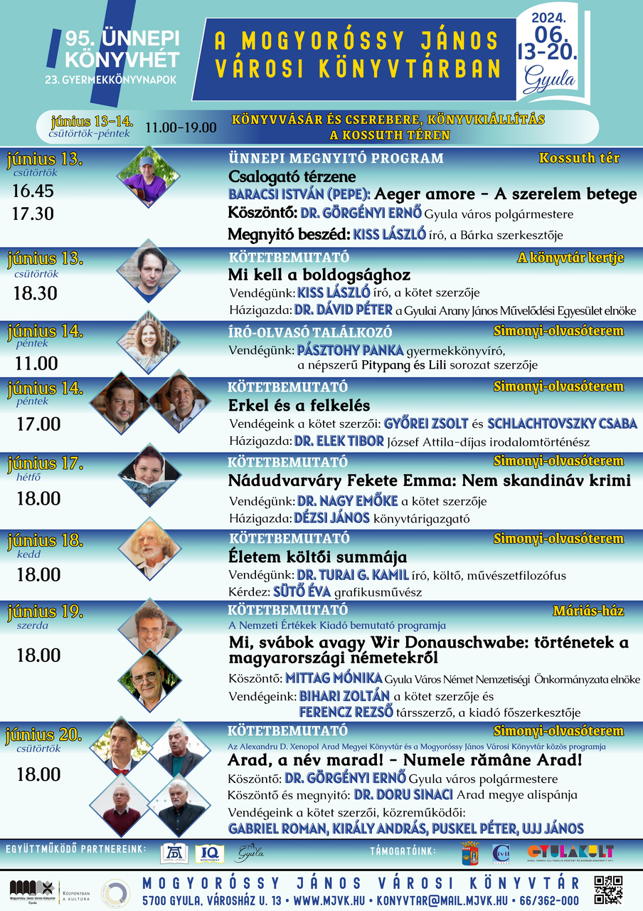 Megnyitották június 13-án Gyulán a 95. Ünnepi Könyvhetet és 23. Gyermekkönyvnapokat, ahol az első napon könyvcsereberével, zenei fellépéssel és kötetbemutatóval várták az érdeklődőket.