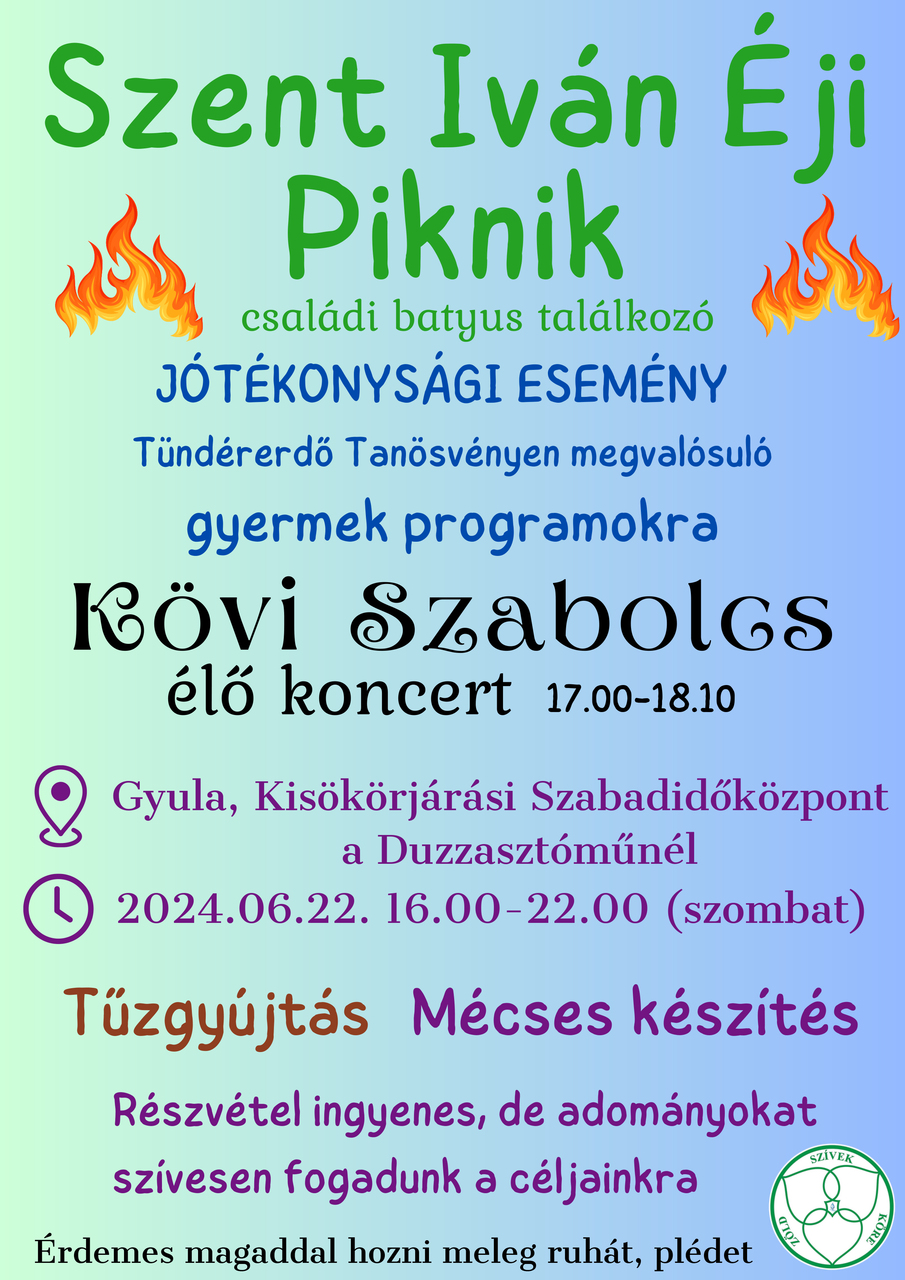 A szervezőktől megtudtuk, a Szent Iván-éji piknik egyben jótékonysági esemény, a résztvevők adományaikkal természetközeli élményfoglalkozások szervezését és a Tündérerdő tanösvény fejlesztését (padok, útjelzők, gyermekfoglalkoztató eszközök beszerzését) támogathatják.