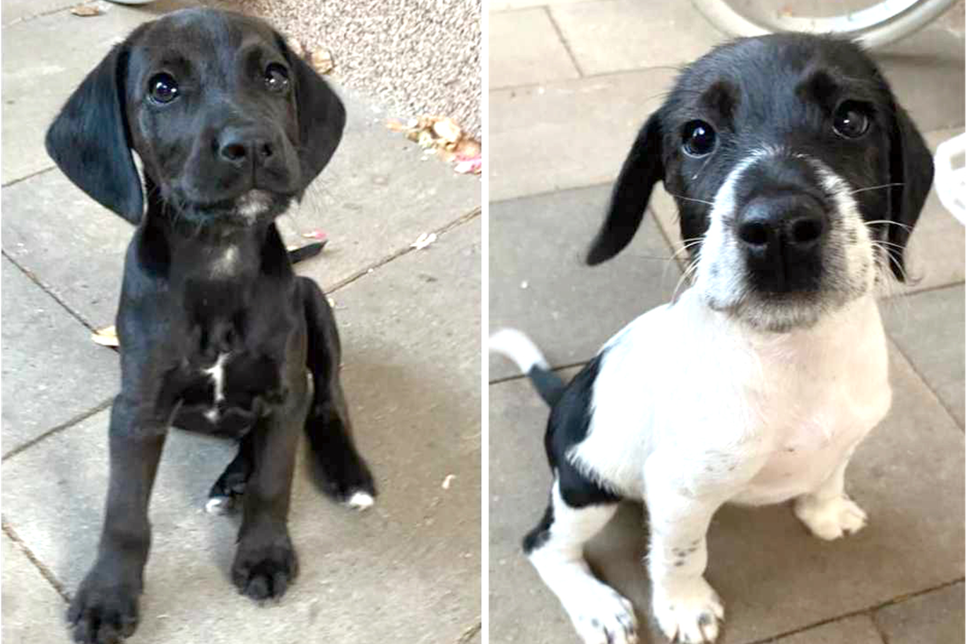 A képen látható 11 hetes kan kölyökkutyáknak keresnek gazdát. A karanténidejük lejárta után fogadhatók örökbe. Barátságos, játékos kölykök. Felnőtt korukban várhatóan közepes testméretűek lesznek. Az érdeklődők hívását a +36-30/851-4155-ös telefonszámon várják.