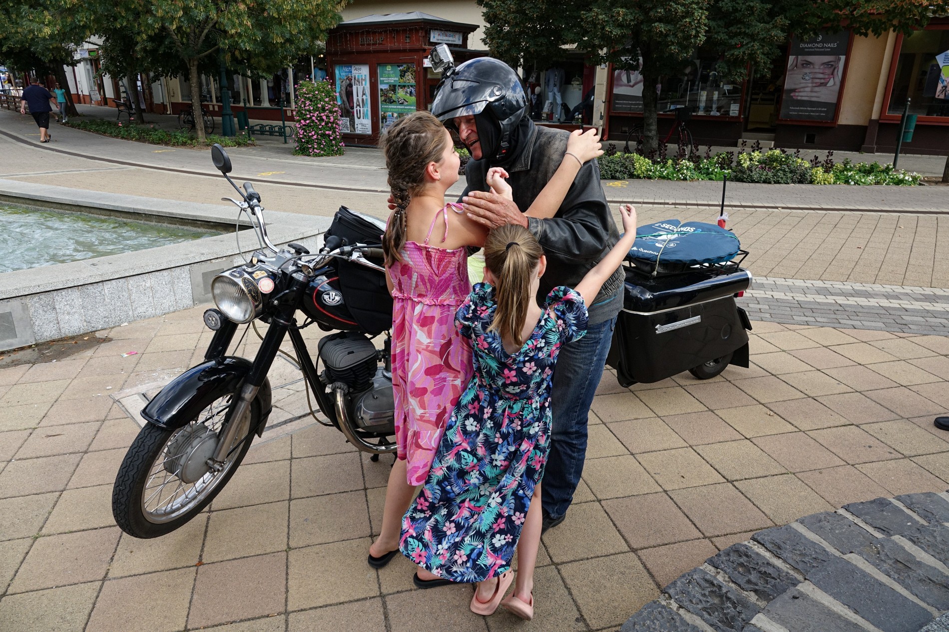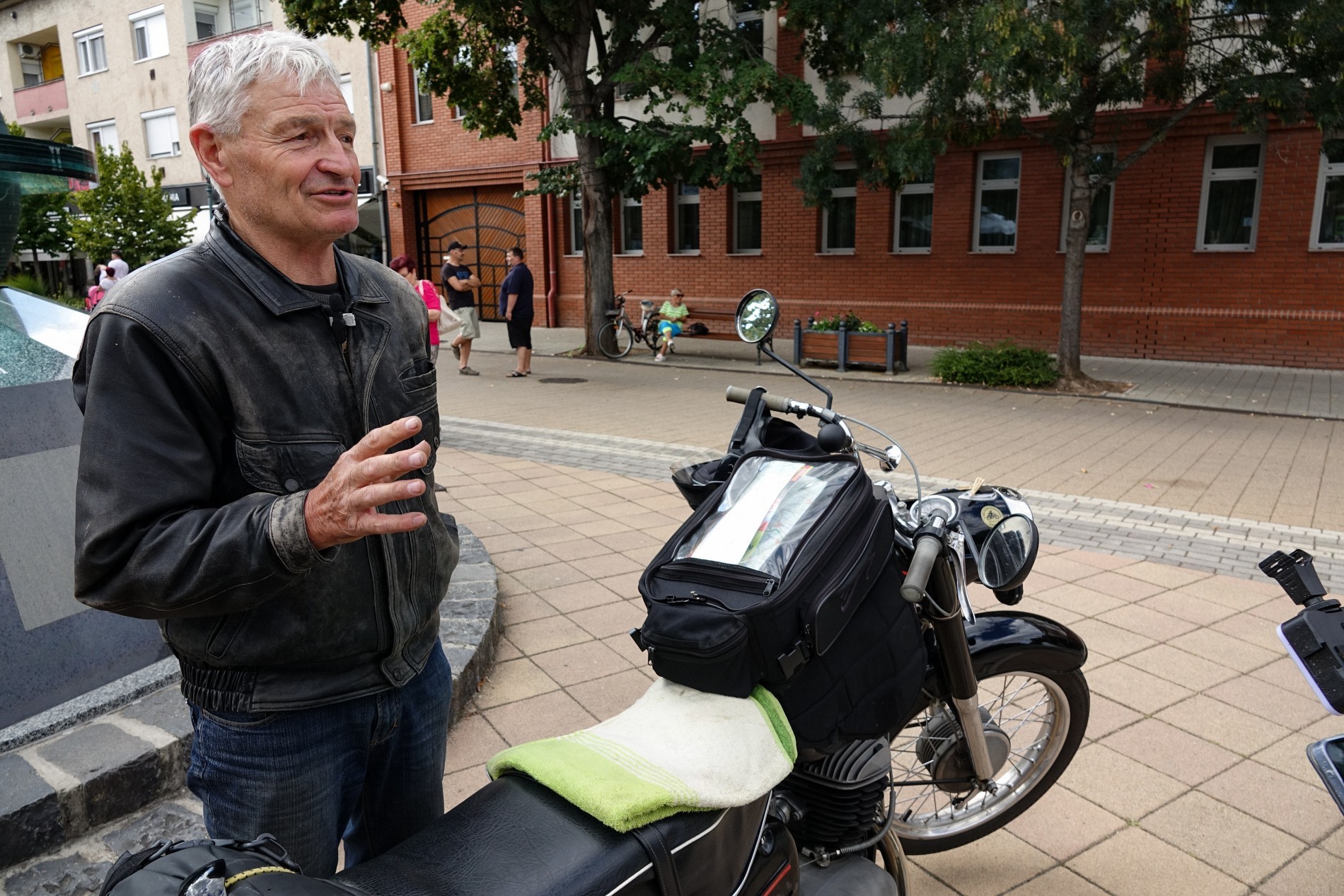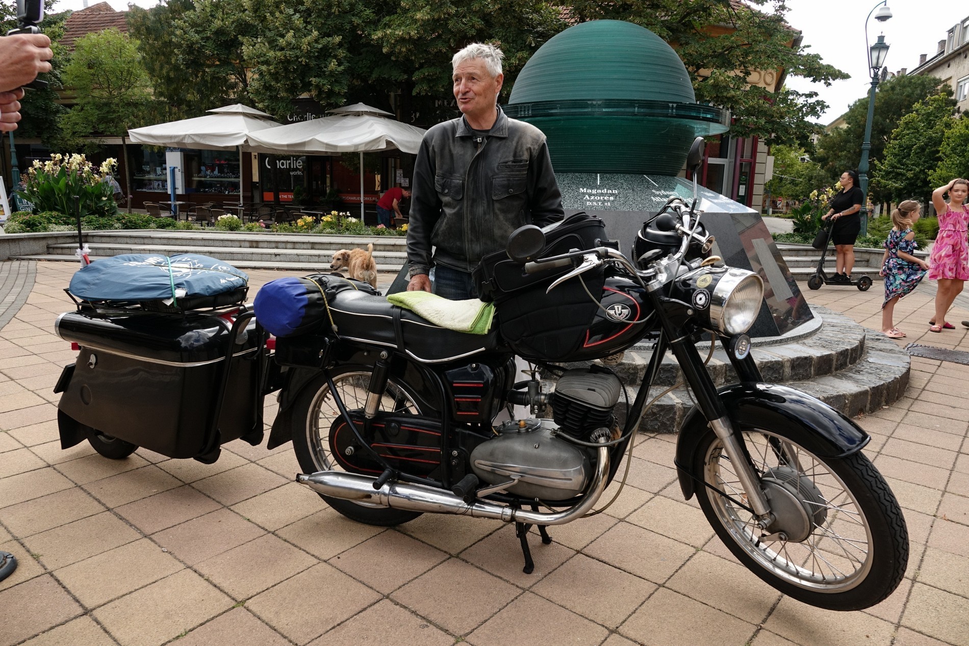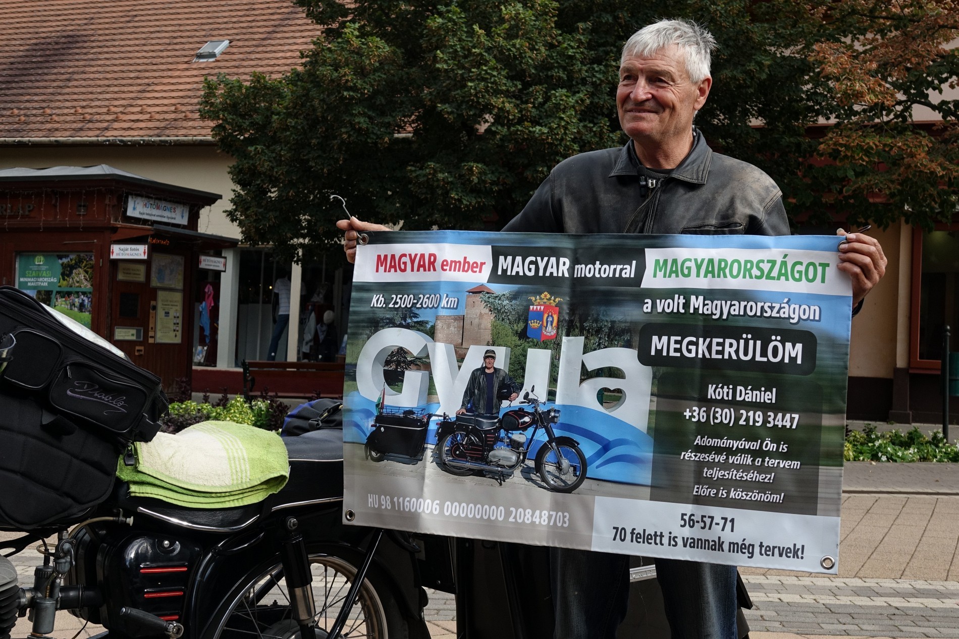 Nem mindennapi motoros túrára vállalkozott a gyulai Kóti Dániel, aki múlt hét pénteken indult el Magyarországot „kívülről” körbekerülő útjára, és kedden délután érkezett meg a Világórához, ahol már nagyon várták unokái. A több mint 2000 kilométeres kalandos út során olyan helyen is járt, ahol nem a csillogó Harley Davidsonokat fényképezték, hanem az ő több mint 50 éves Pannoniáját.