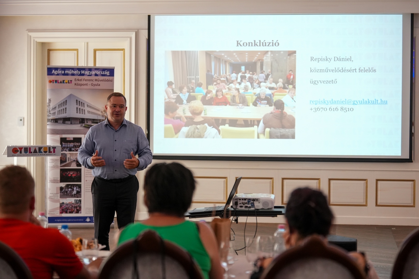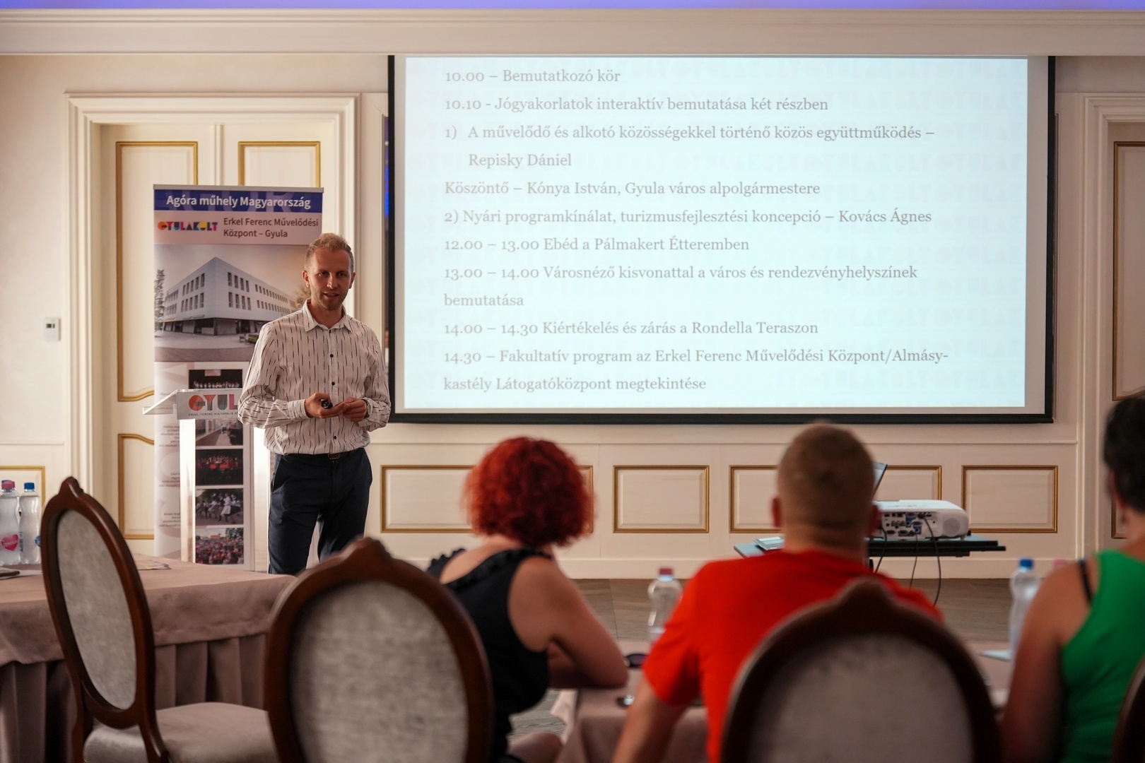 Az ügyvezető igazgató kiemelte: a vendégeknek beszélt az alkotó közösségekkel való együttműködésről, hiszen a művelődési központ nem csupán helyet biztosít a különféle csoportoknak, hanem közös programokat is szerveznek, valamint a Gyulai Nyári Korzón és a Gyulai Végvári Napokon keresztül bemutatta azt is, hogy egy közművelődési intézmény hogyan segítheti a turizmust.