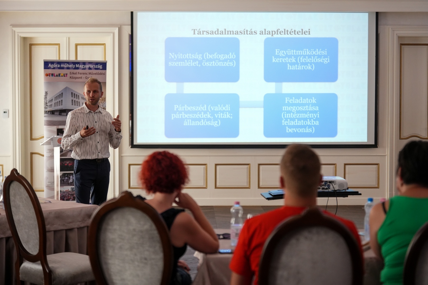 Repisky Dániel, az Erkel Ferenc Nonprofit Kft. közművelődésért felelős ügyvezetője elmondta: a Látópont elnevezésű pályázatot a Magyar Közösségépítők Értékszövetsége Egyesület hirdette meg, amely során 2021 őszén száz intézmény nyerte el a Látópont minősítést, amelyek más közművelődési szervezetekkel ismertetik meg jógyakorlataikat, közösségi kezdeményezésiket.