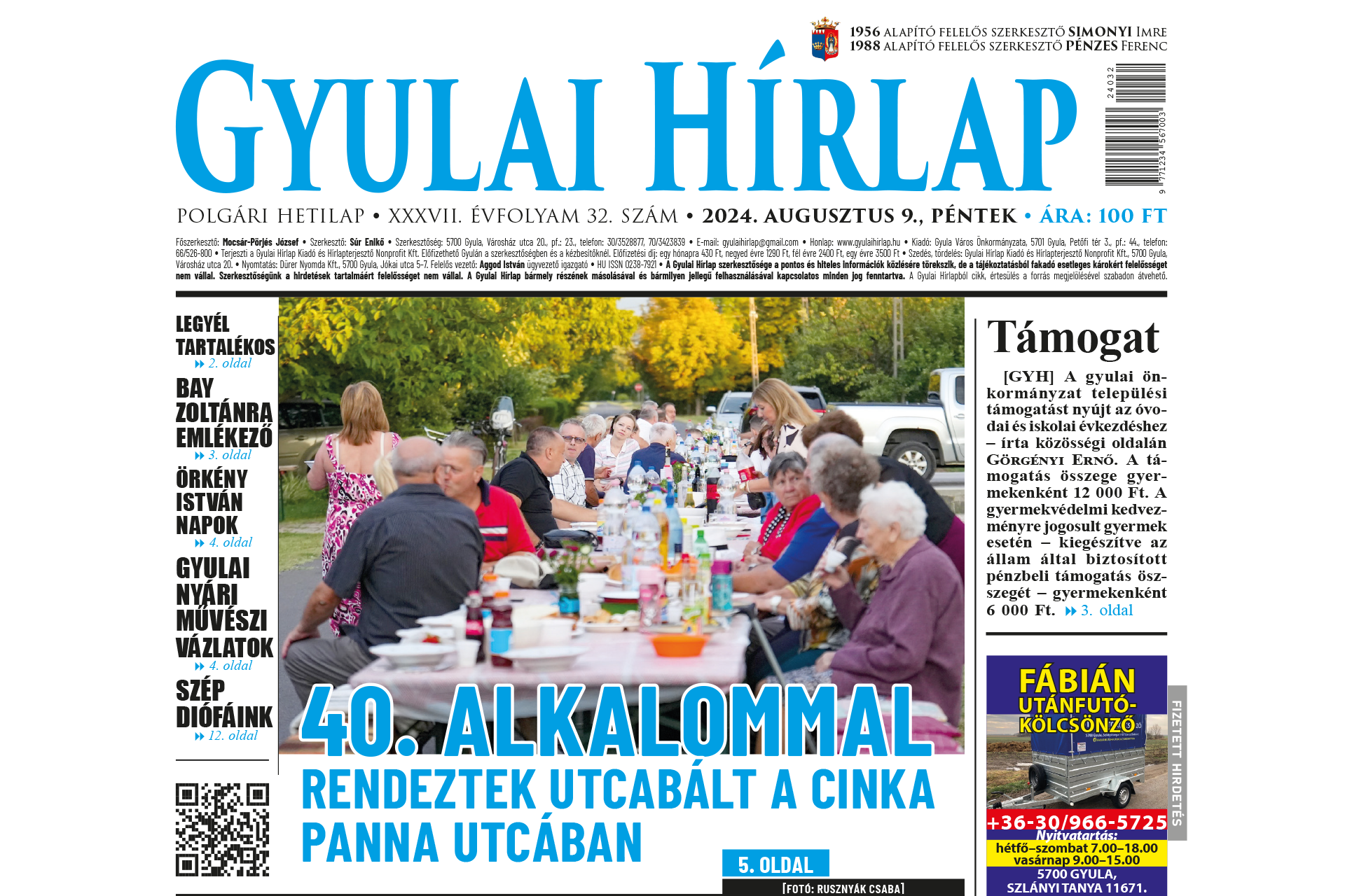 GYULAI HÍRLAP • HÍREK • 2024. augusztus 11. 11:00