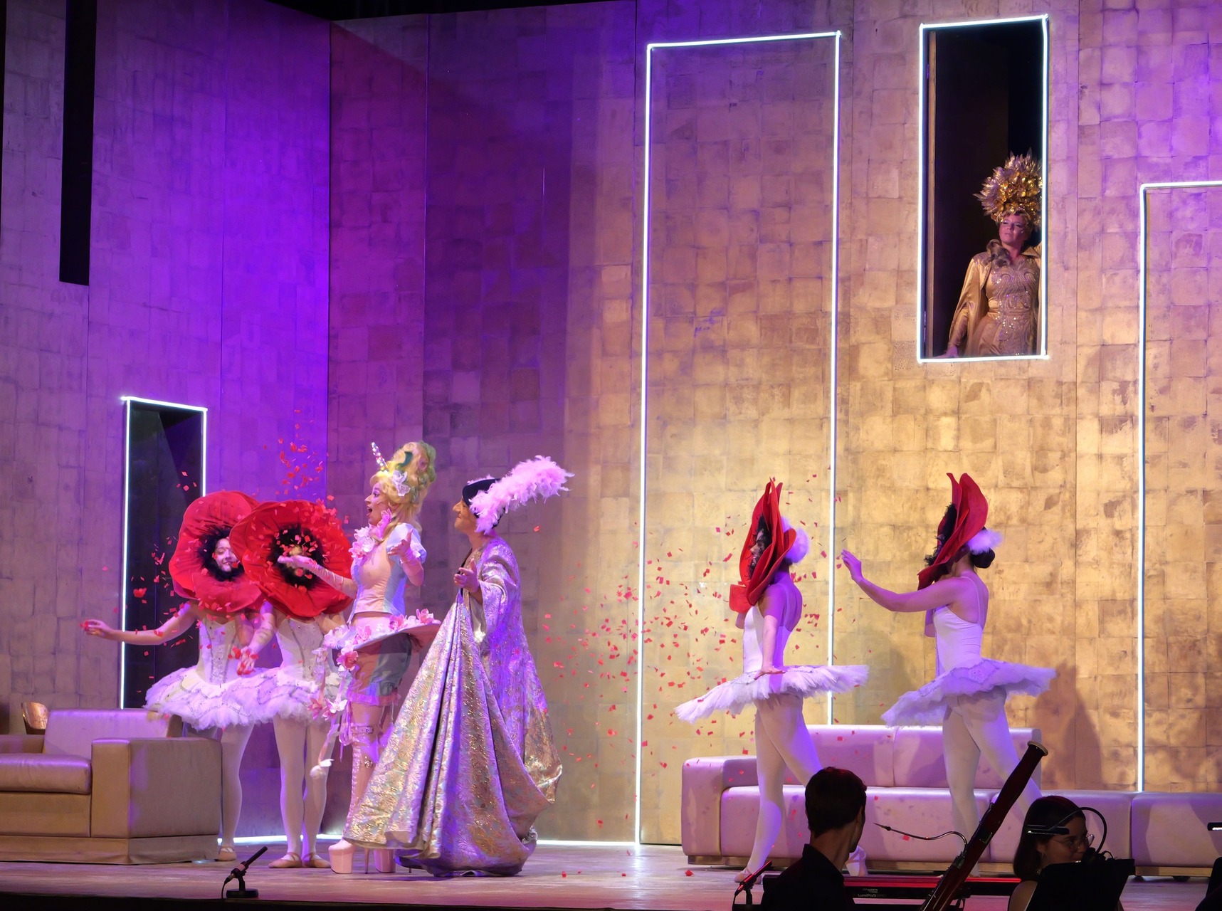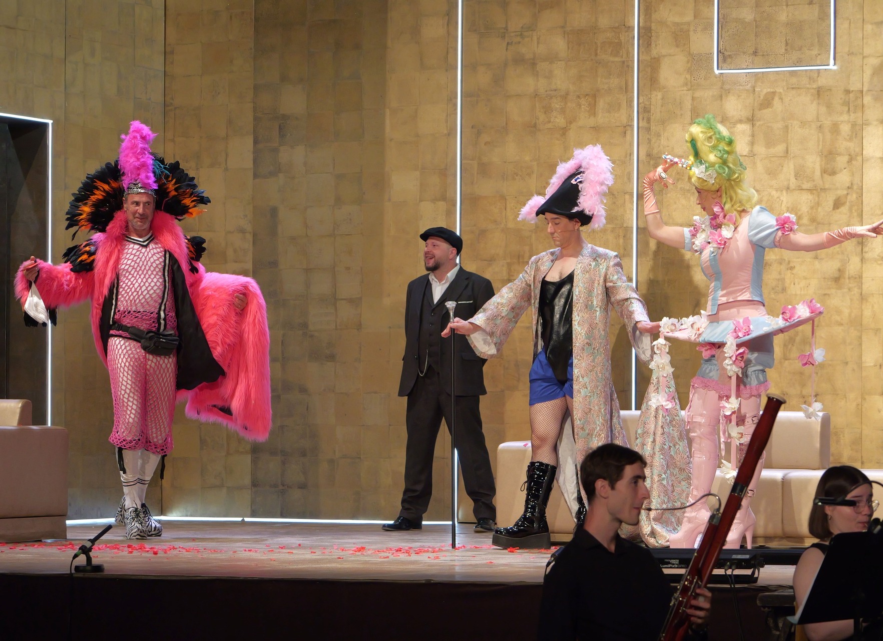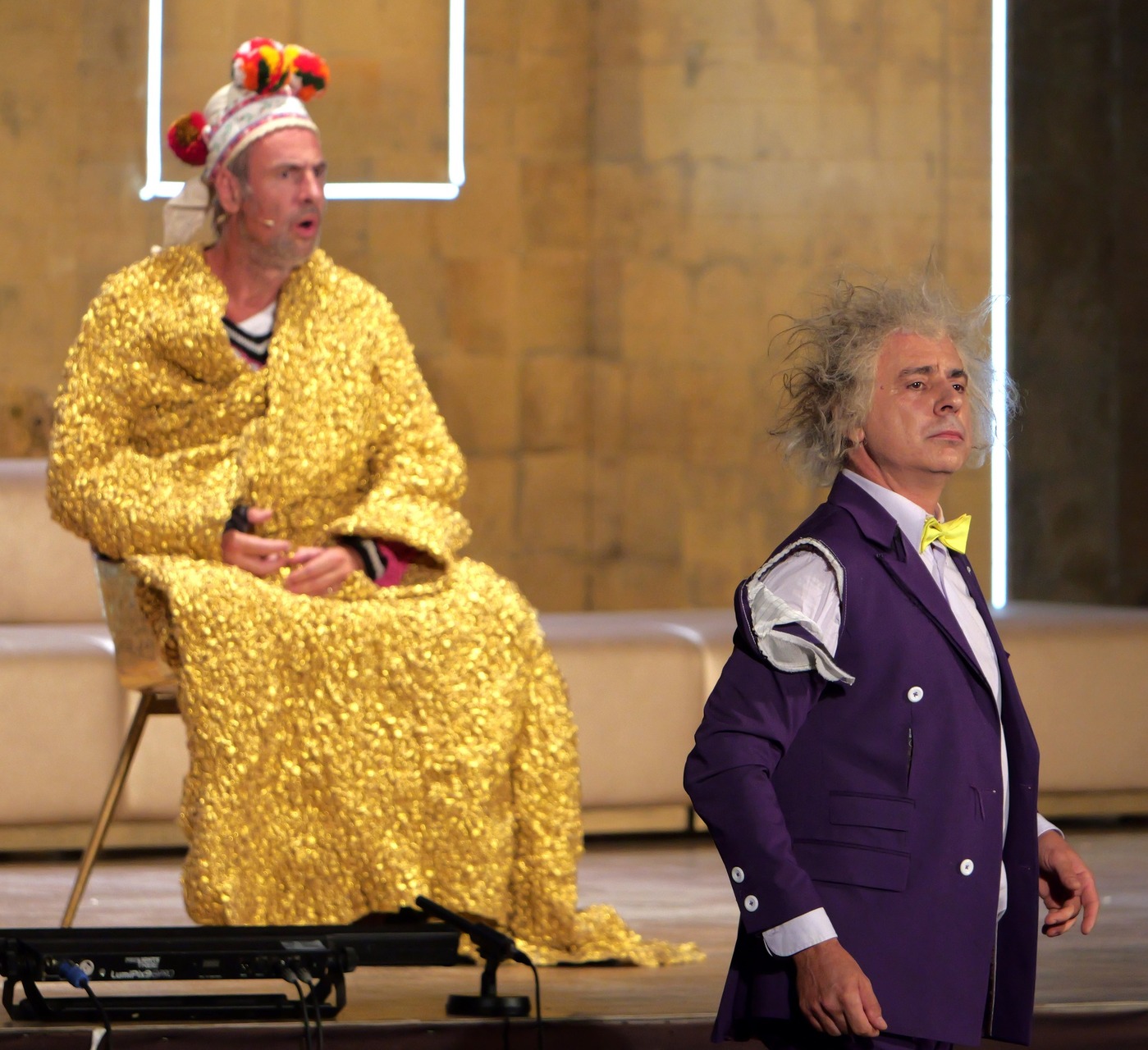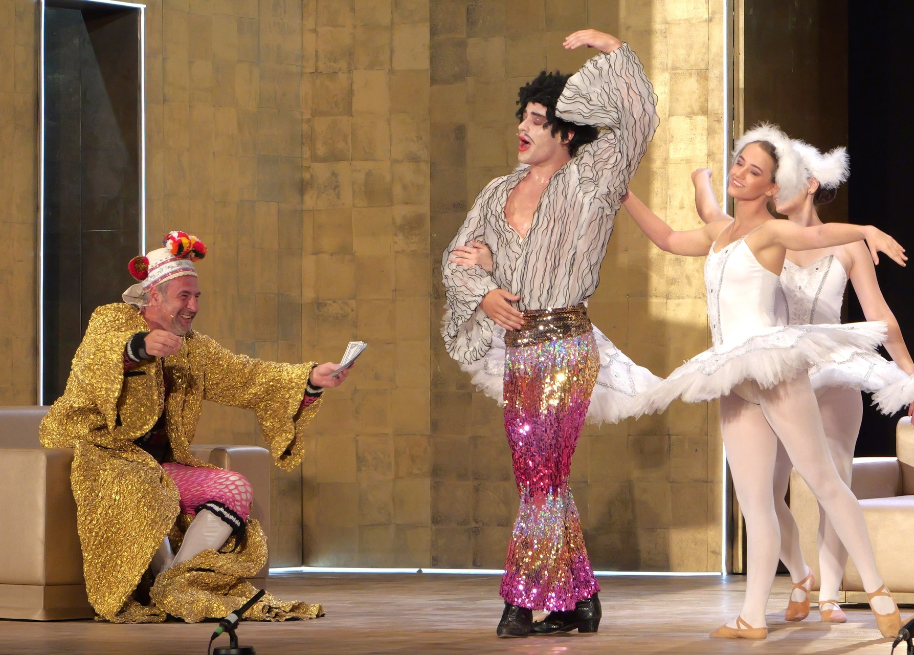 Bianca Imelda Jeremias jelmezei a rokokó divatot, napjaink giccsét és az LMBTQ-csoportok divattörekvéseit elegyítették gunyoros módon, a törökök napszemüvegeikkel azonban inkább arab üzletemberekre hajaztak, mintsem valódi önmagukra, ám együttesük feldobta a darab hangulatát. Amiként a filozófus és a japán küzdőmester figurája is.