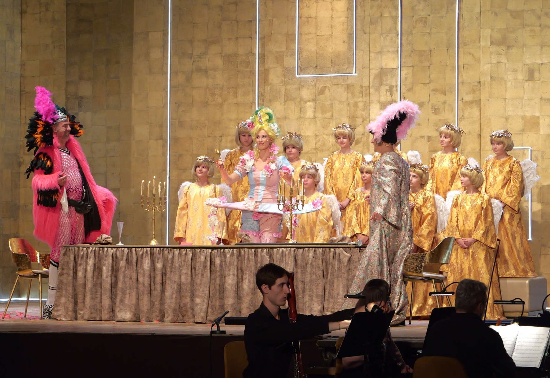 Az előadás rendezője, Keresztes Attila számos új ötlettel állította színpadra a sokat játszott komédiát. Ebben Katona Gábor koreográfus is a segítségére volt. Festői lett a vendéglátás jelenete, a háttérben barokk puttókként megjelenített kórustagokkal, a porszívózó szolgálónő pedig filmes érzetet keltett. Az erkélyből éneklő szólista, valamint a „Napkirályra”, a gazdagságra utaló aranyárnyalatok a művészi hatáson emeltek.