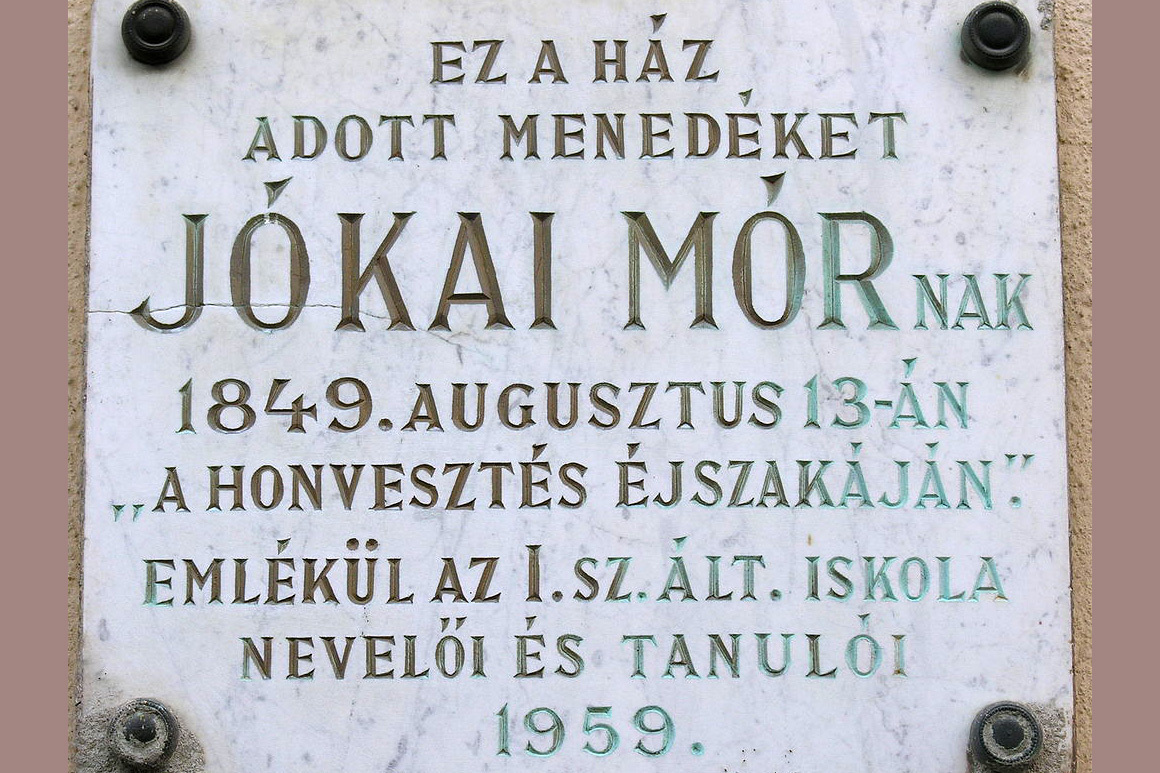 a kossuth lajos utcában emléktábla őrzi, hogy hol szállt meg Jókai mór