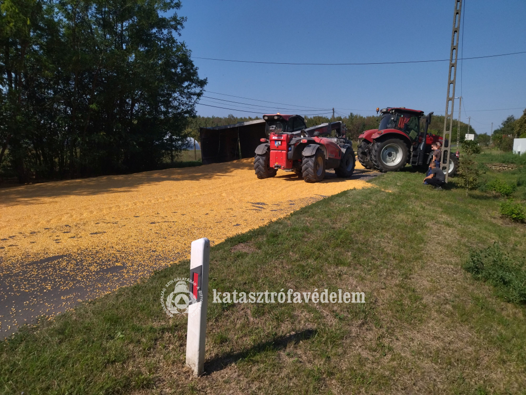 Felborult egy kukoricát szállító pótkocsi szeptember 19-én délután Gyula külterületén, a 4234-es úton – közölte honlapján a Békés Vármegyei Katasztrófavédelmi Igazgatóság.