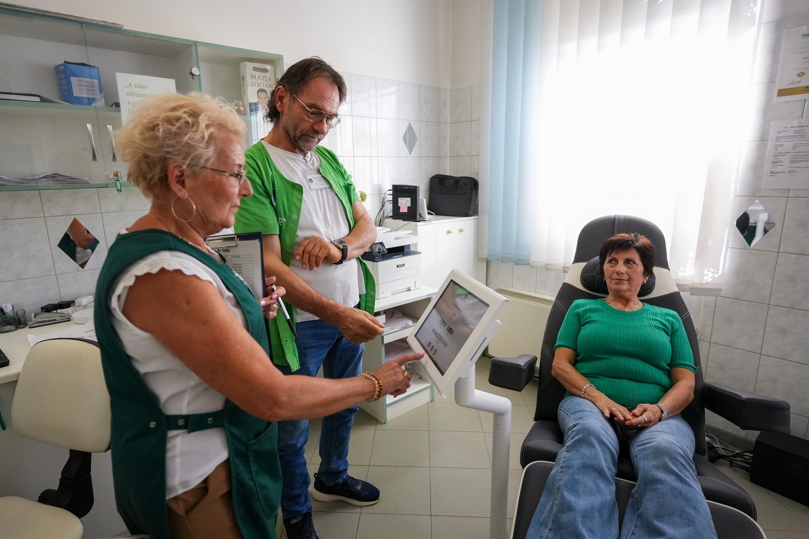 A legfelső képen a következők láthatók (balról jobbra): Veres István és Veres Istvánné szakmai vezetők, Bende Sándorné asszisztens. A fotón nem szerepel, de a csapat tagja Bonczos Andrea asszisztens és dr. Demény János címzetes főorvos, tanácsadó.