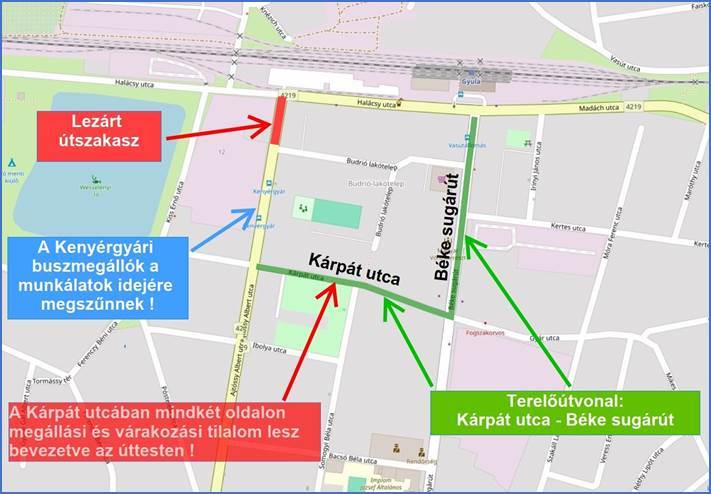 - Terelő útvonalként a Kárpát utcát jelölik ki.