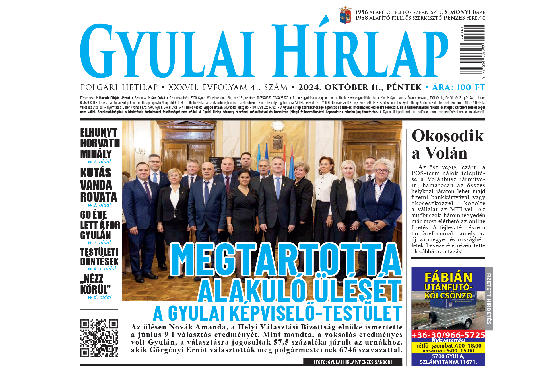 Itt a legfrissebb Gyulai Hírlap! Keresse az újságárusoknál!