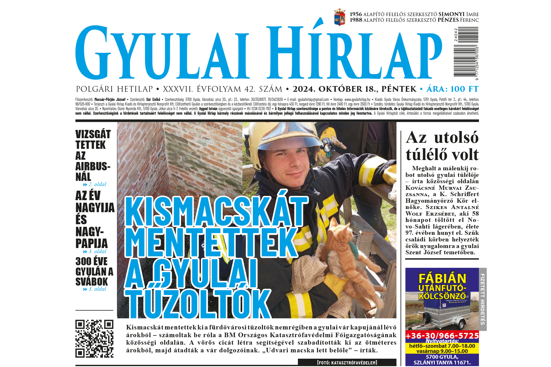 Itt a legfrissebb Gyulai Hírlap! Keresse az újságárusoknál!