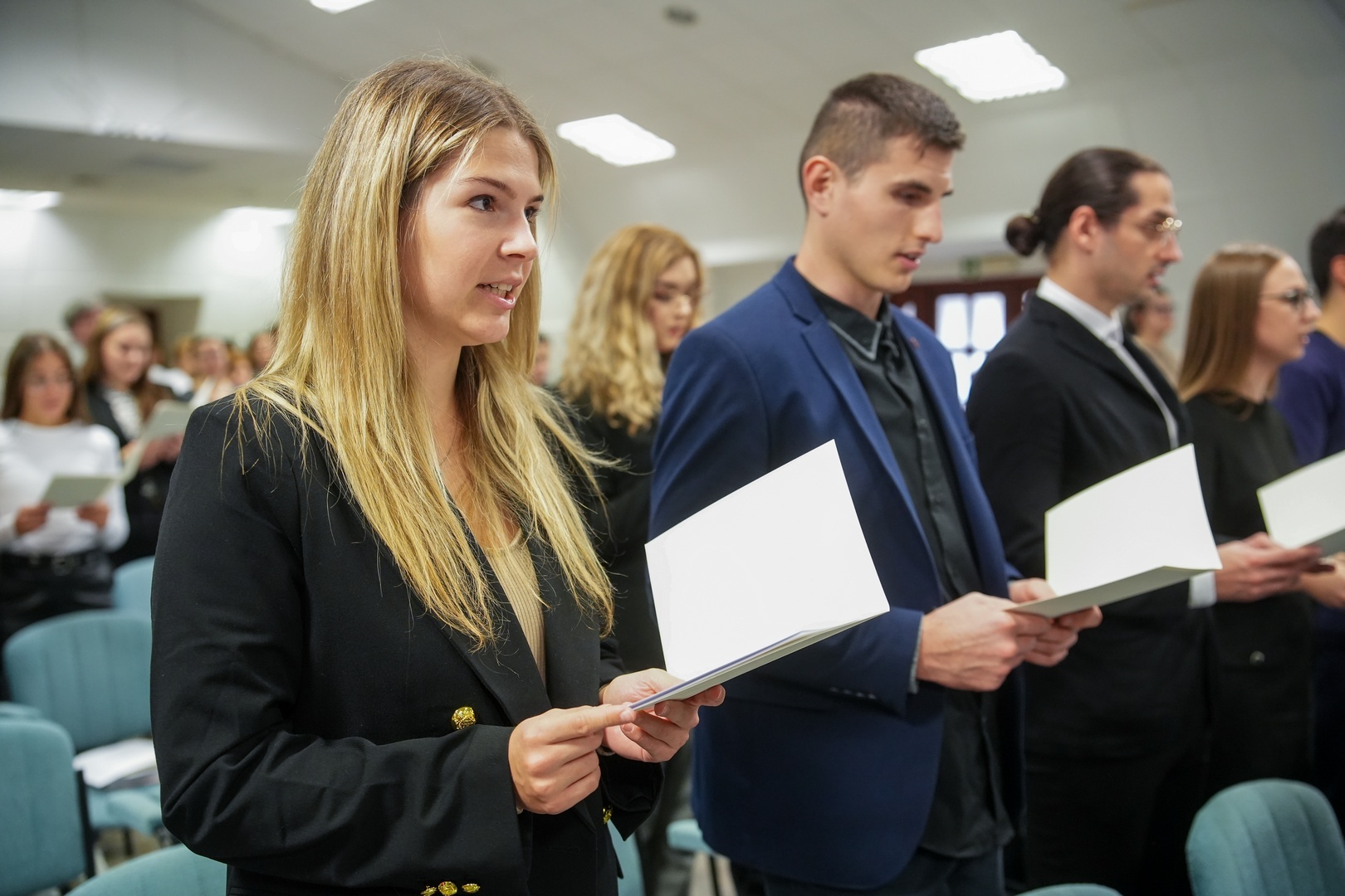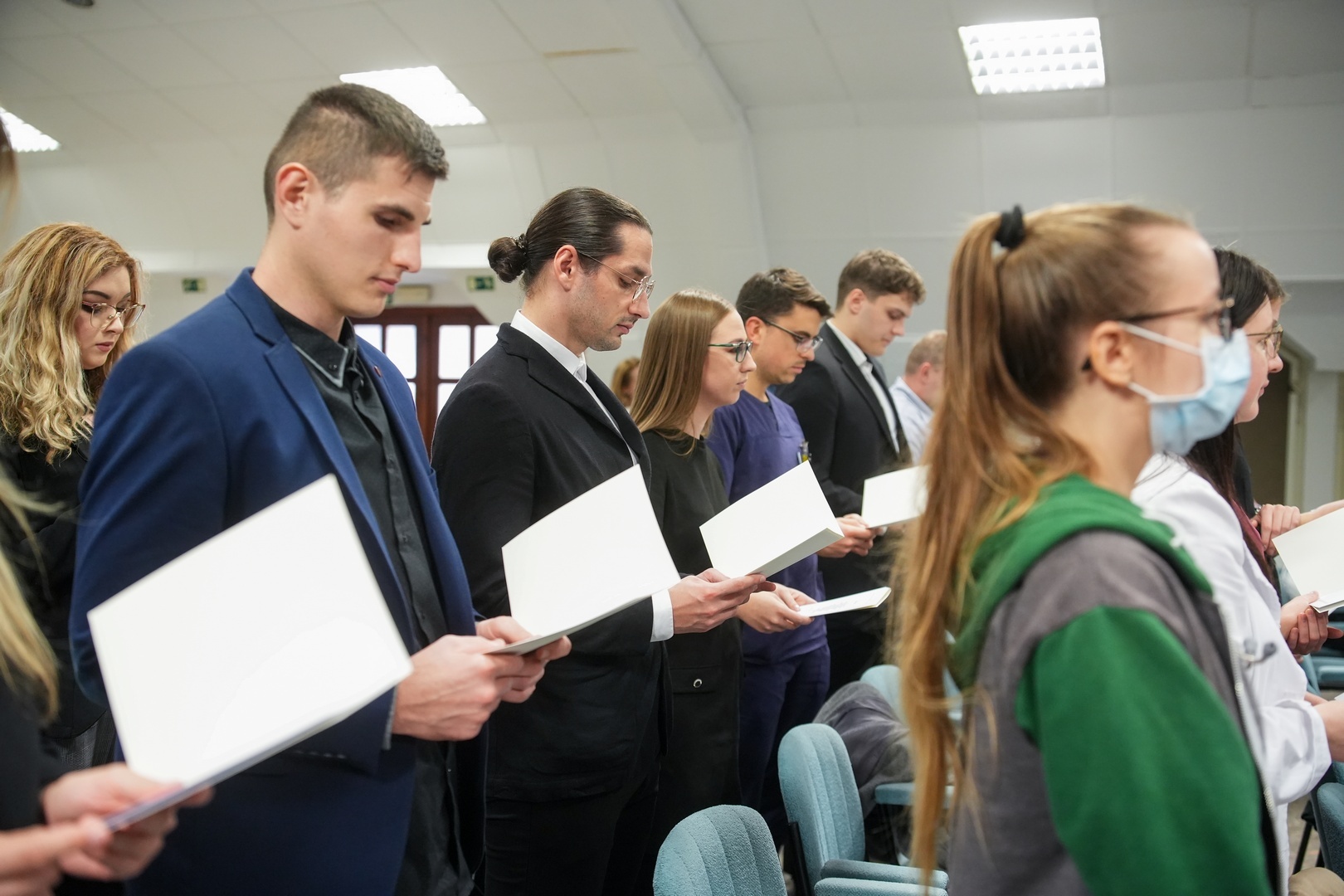 A köszöntők után esküt tettek a pályakezdők, valamint köszöntötték a szakvizsgázott orvosokat, majd a kitüntetések átadása következett.