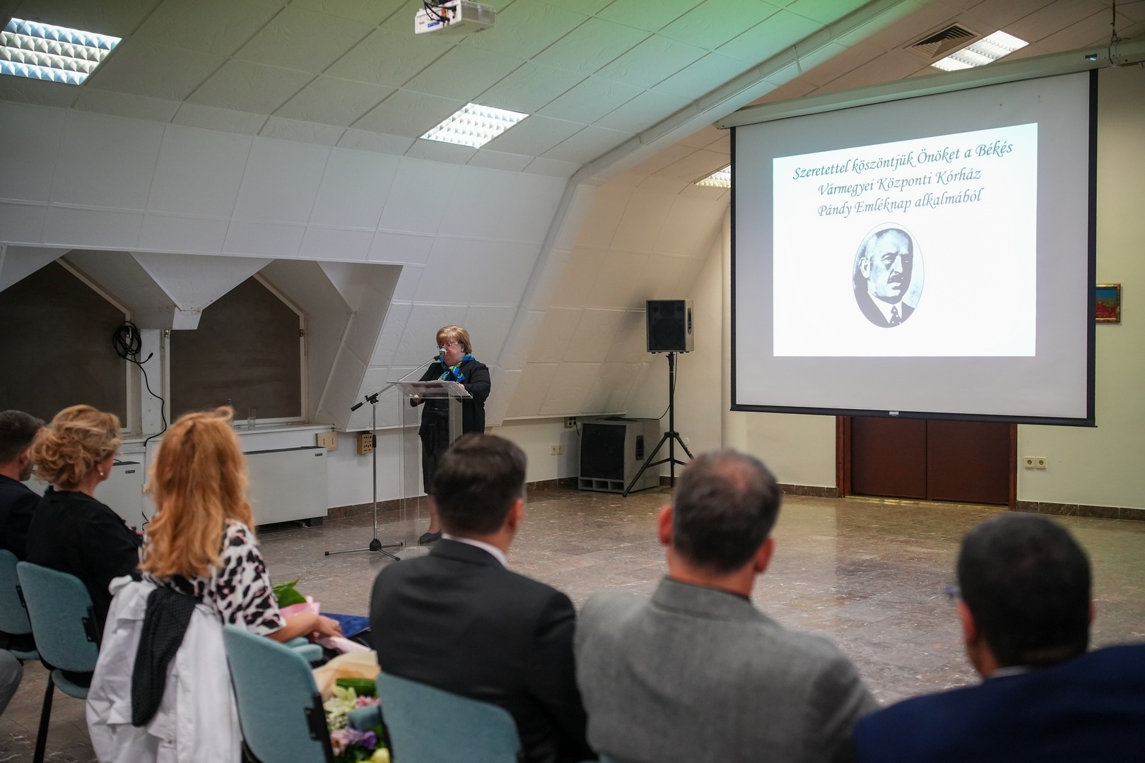 A megjelenteket elsőként Becsei László főigazgató főorvos köszöntötte. Mint mondta, a gyulai kórházban a hagyományok ápolása, a neves elődök tisztelete mindig kiemelt értéket jelentett, bizonyítják ezt az emléktáblák, a Pándy-fák, amelyeket az emlékéremmel kitüntetett dolgozók ültetnek el.