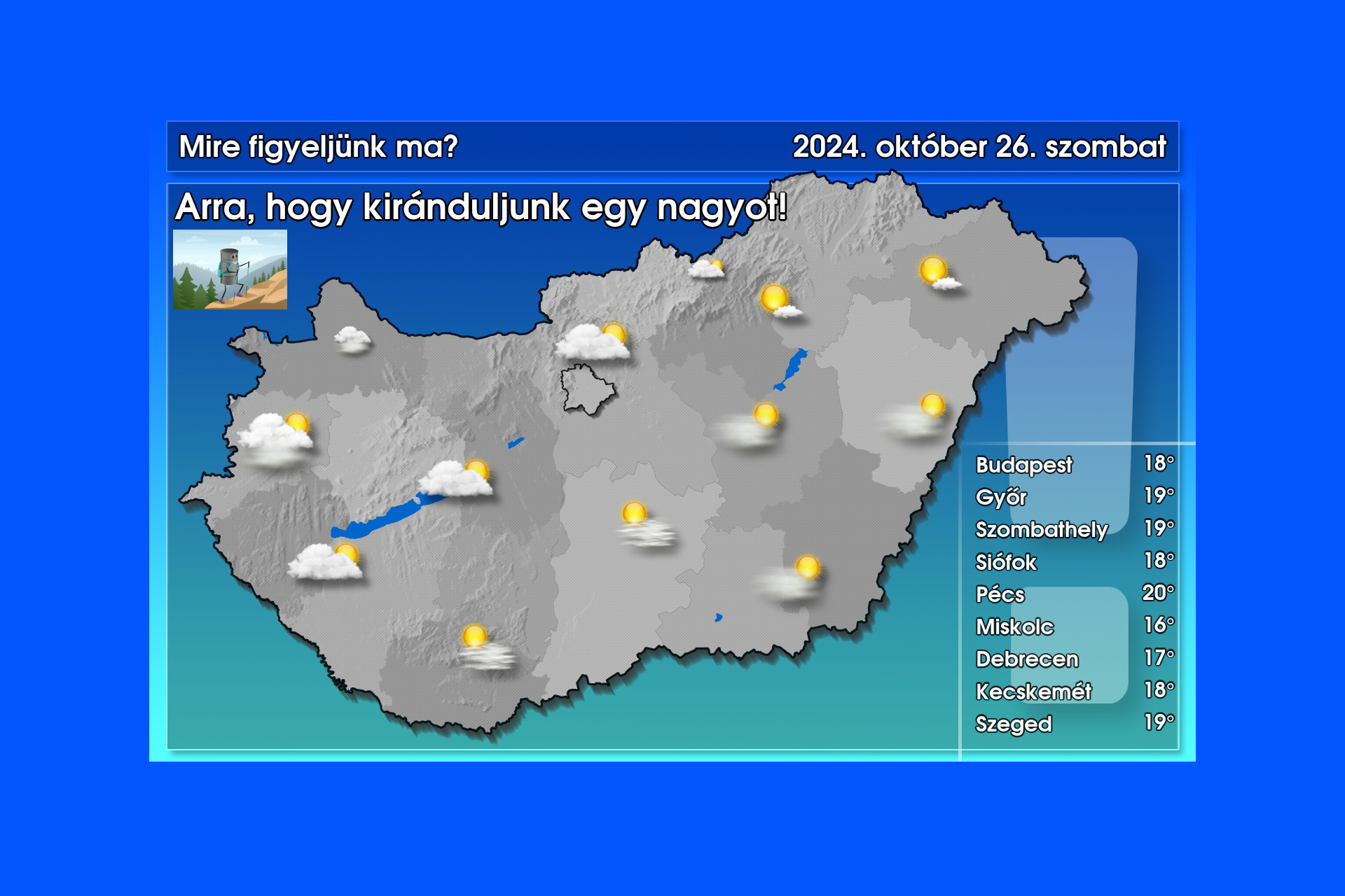 A párásság, köd, illetve rétegfelhőzet oszladozását, szakadozását követően nagyrészt fátyolfelhők szűrik, zavarják majd a napsütést. Emellett főleg nyugaton, északnyugaton, északon tartósan felhős tájak is maradhatnak. Csapadék nem várható. Az Észak-Dunántúlon élénk lökések kísérhetik a déli, délkeleti szelet, másutt a keleties irányú légmozgás jobbára mérsékelt marad. Érdemes lesz kihasználni a csendes őszi időt ma is!