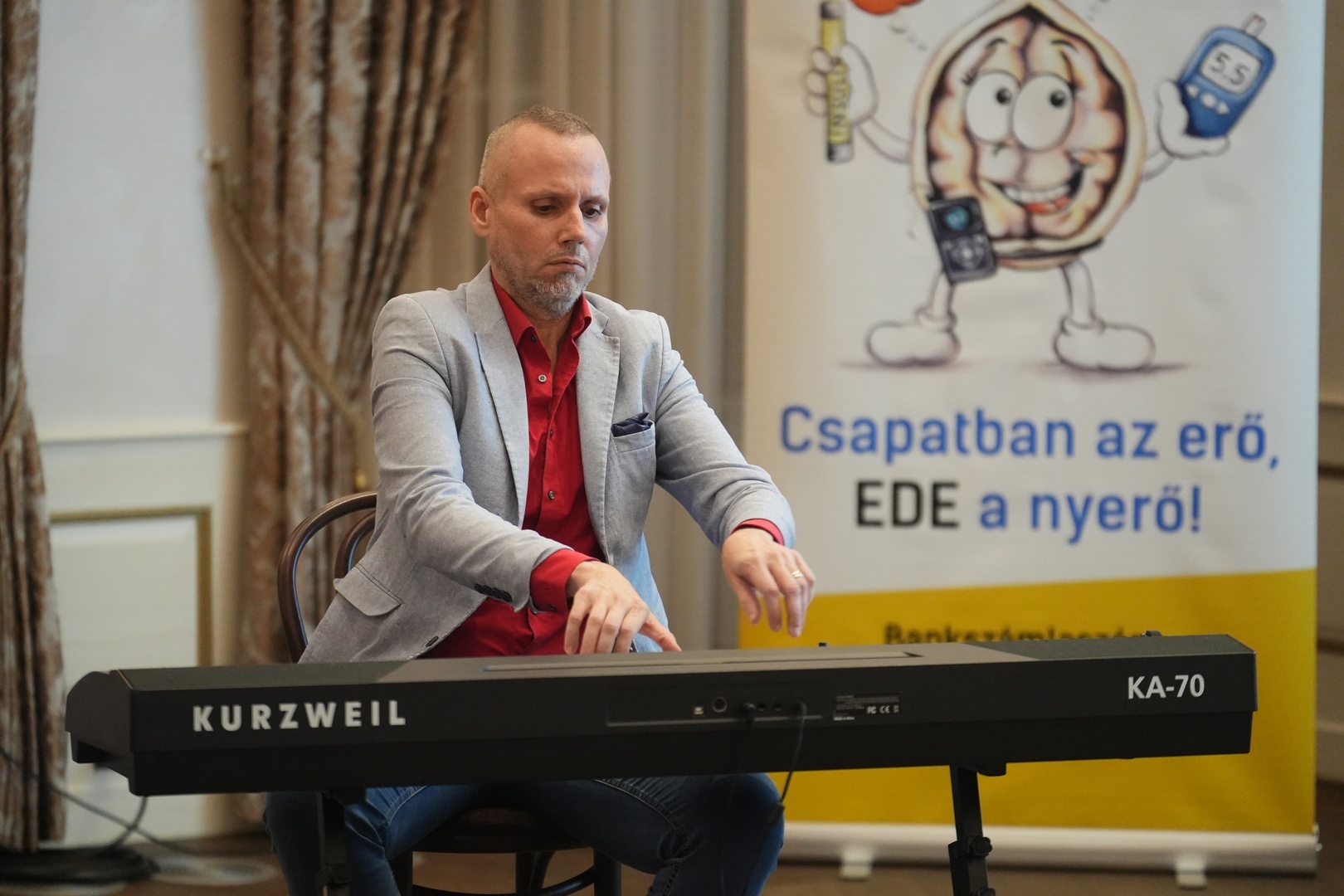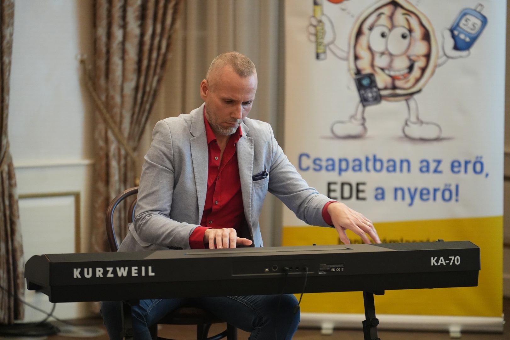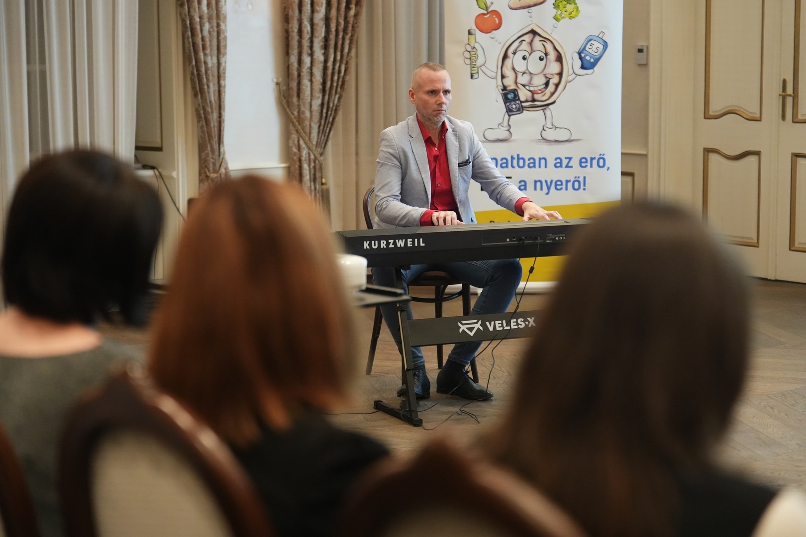 A Stefánia-szárnyban Vozár M. Krisztián zongorista lépett fel, aki harmadik éve támogatja jótékonysági koncerttel cukorbeteg gyereket nevelő Békés vármegyei családokat.