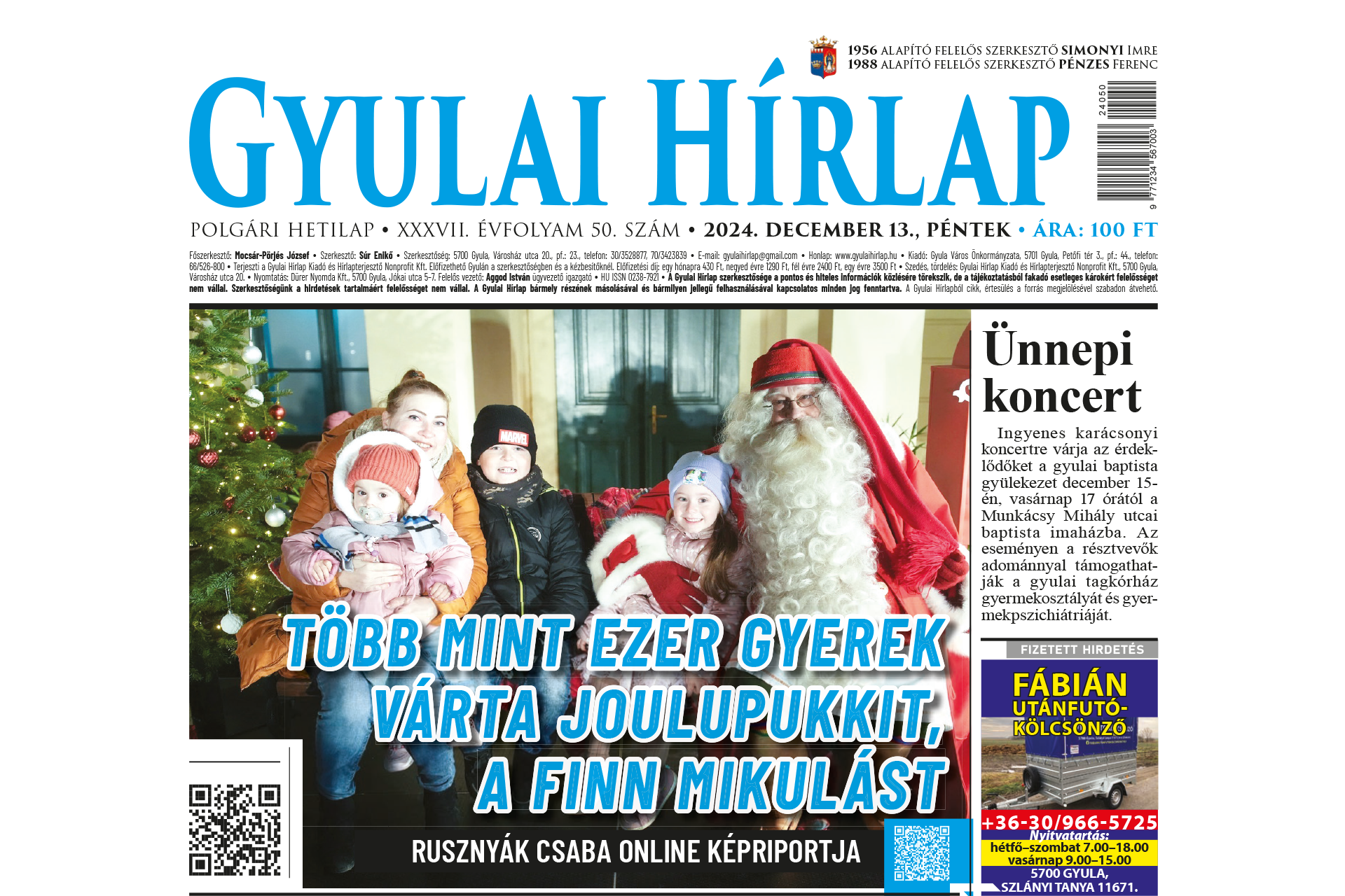 GYULAI HÍRLAP • HÍREK • 2024. december 15. 11:00