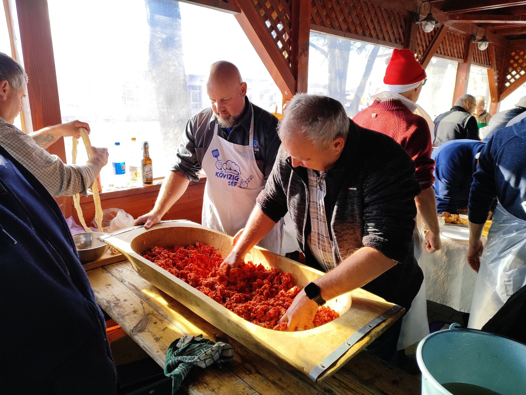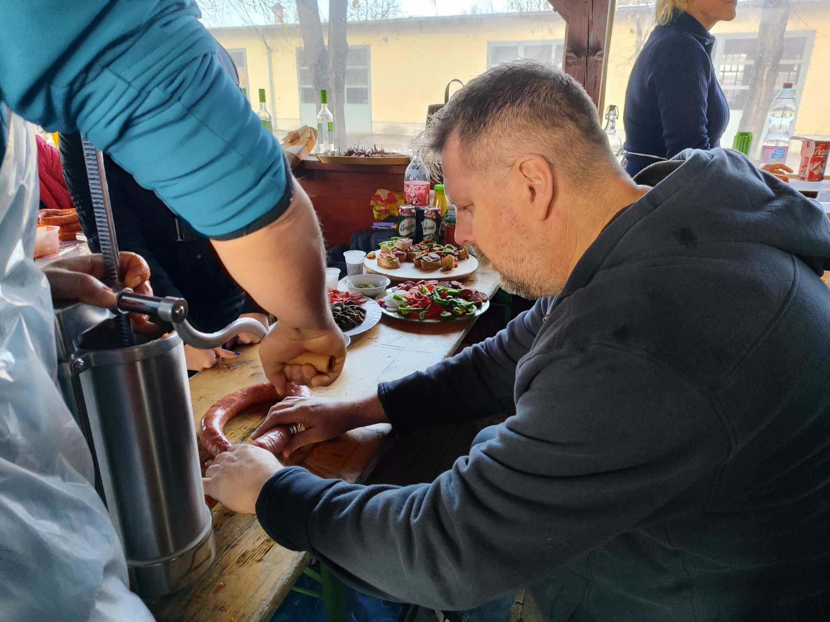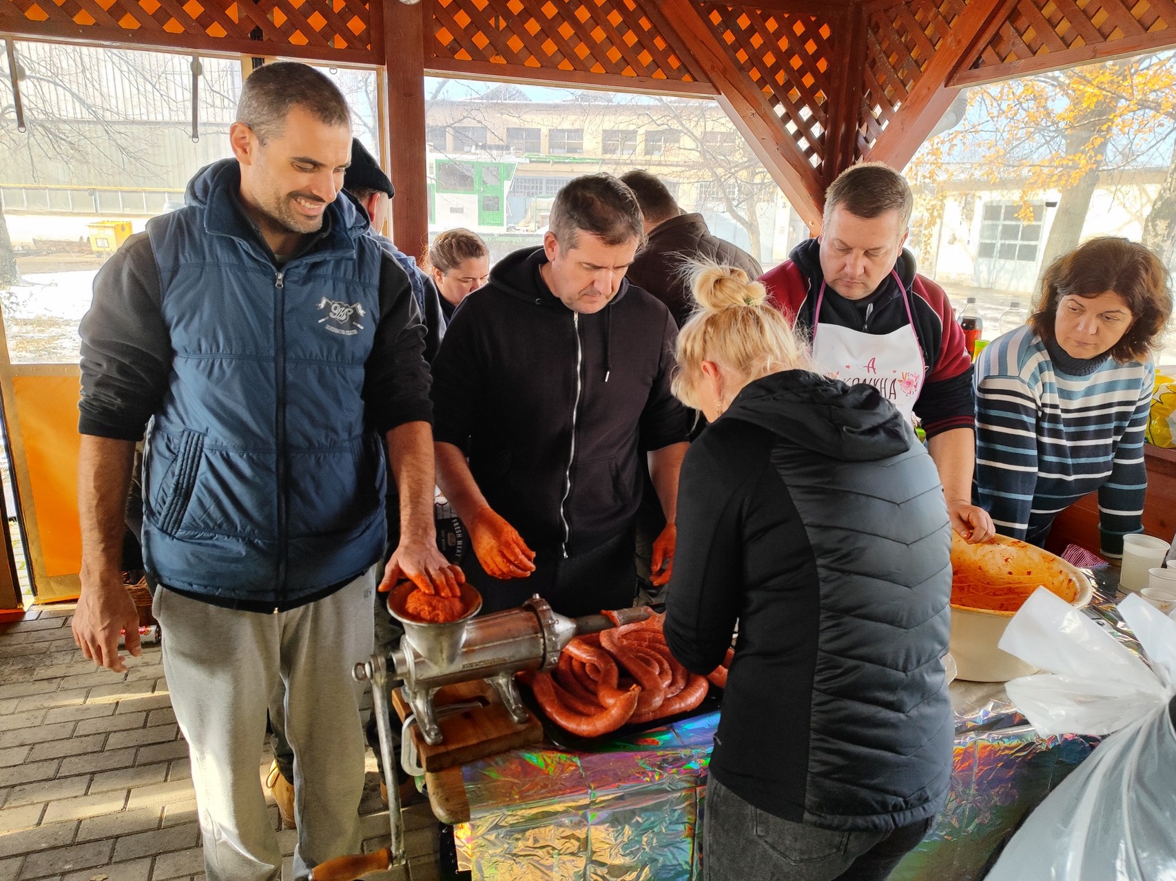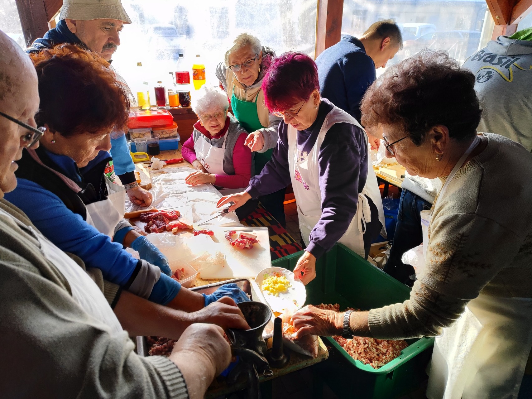 „Együtt gyúrták a kolbászt kicsik és nagyok, aktív dolgozók és nyugdíjasok” – írták az intézmény honlapján.
