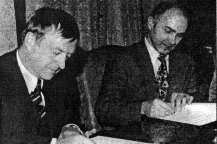 POCSAY GÁBOR ÉS CRISTIAN MOISESCU A MEGÁLLAPODÁS ALÁÍRÁSAKOR
